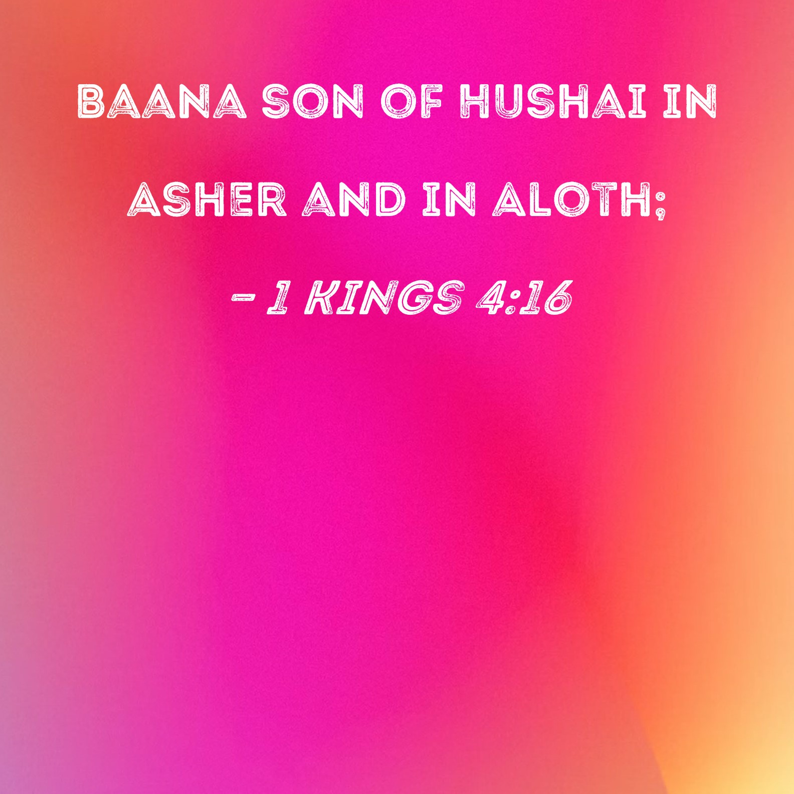 1 Kings 4:16 Baana son of Hushai in Asher and in Aloth;