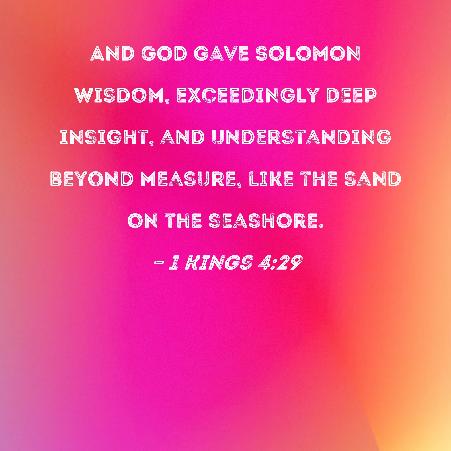 1 Kings 4:29 And God gave Solomon wisdom, exceedingly deep insight, and understanding beyond measure, like the sand on the seashore.