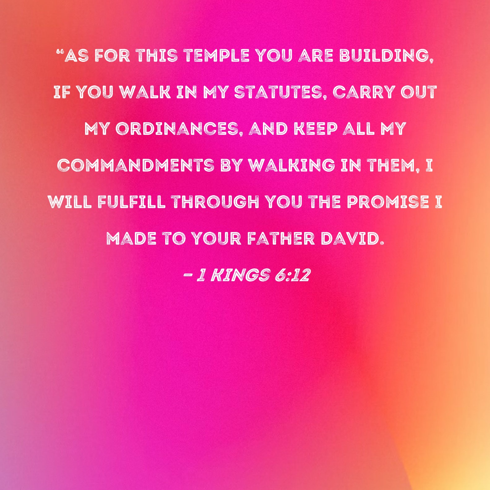 1 Kings 6:12 "As for this temple you are building, if you walk in My statutes, carry out My ordinances, and keep all My commandments by walking in them, I will fulfill through you the promise I made to your father David.
