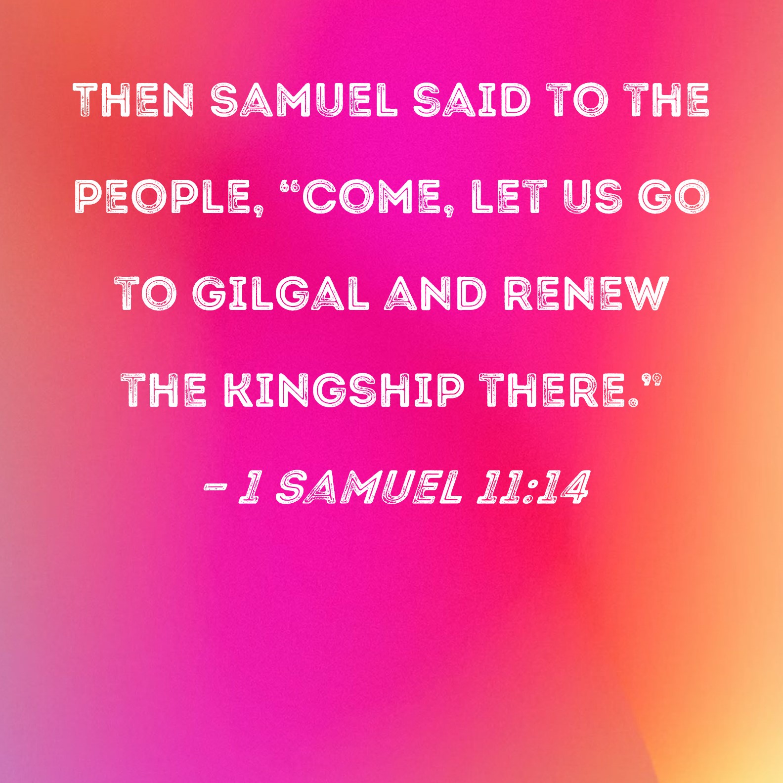 1 Samuel 11:14 Then Samuel said to the people, "Come, let us go to Gilgal and renew the kingship there."