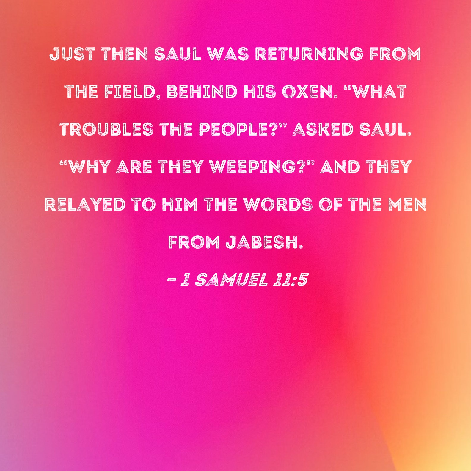 1 Samuel 11:5 Just then Saul was returning from the field, behind his oxen. "What troubles the people?" asked Saul. "Why are they weeping?" And they relayed to him the words of the men from Jabesh.