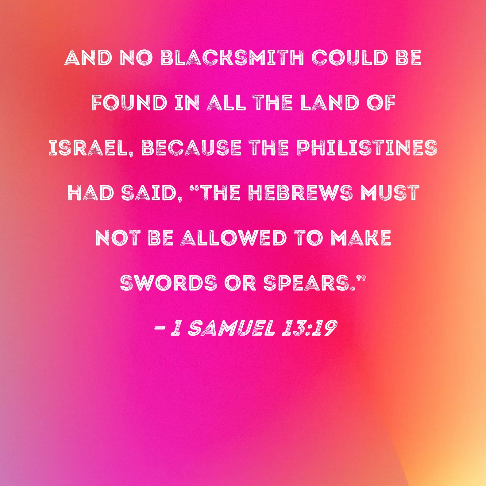 1 Samuel 13:19 And no blacksmith could be found in all the land of Israel, because the Philistines had said, "The Hebrews must not be allowed to make swords or spears."