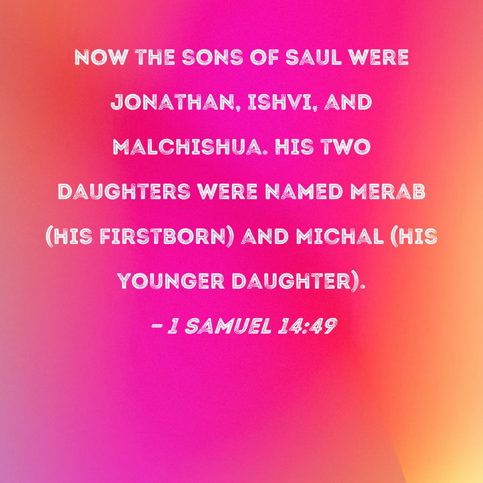 1 Samuel 14:49 Now the sons of Saul were Jonathan, Ishvi, and Malchishua. His two daughters were named Merab (his firstborn) and Michal (his younger daughter).