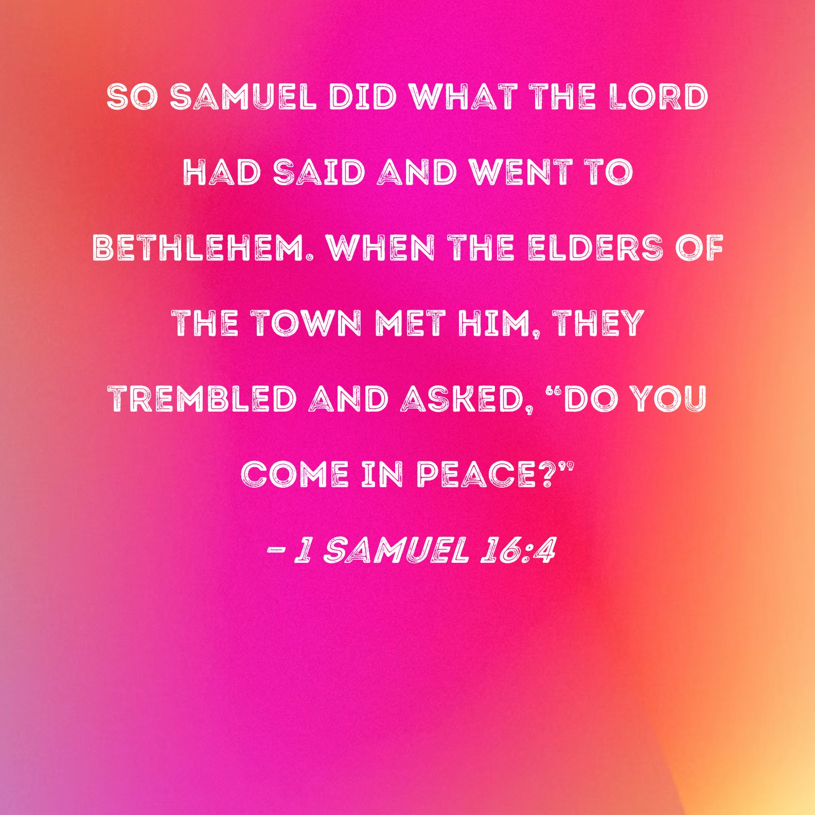 1 Samuel 16:4 So Samuel did what the LORD had said and went to Bethlehem. When the elders of the town met him, they trembled and asked, "Do you come in peace?"