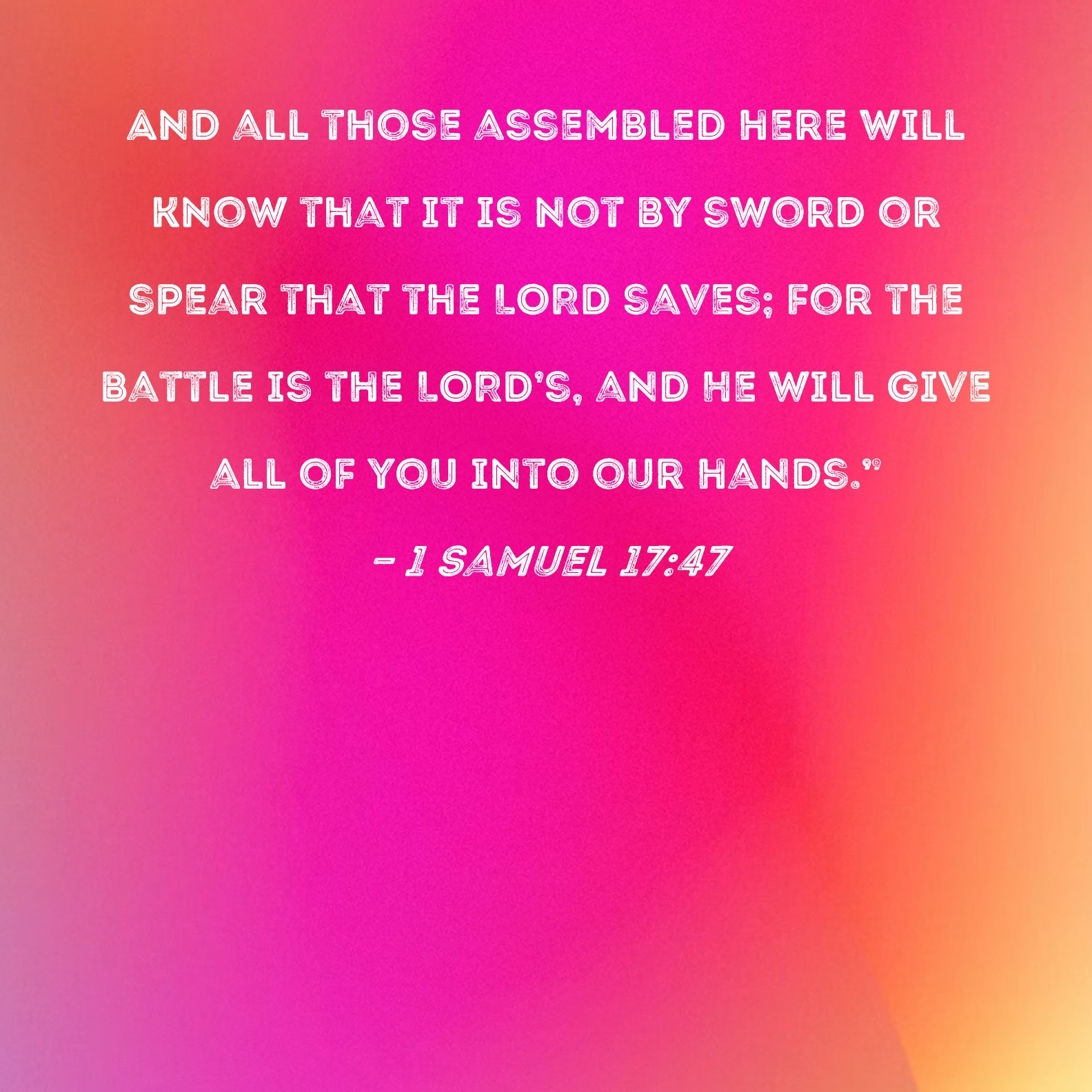 1 Samuel 17:47 And all those assembled here will know that it is not by sword or spear that the LORD saves; for the battle is the LORD's, and He will give all of you into our hands."