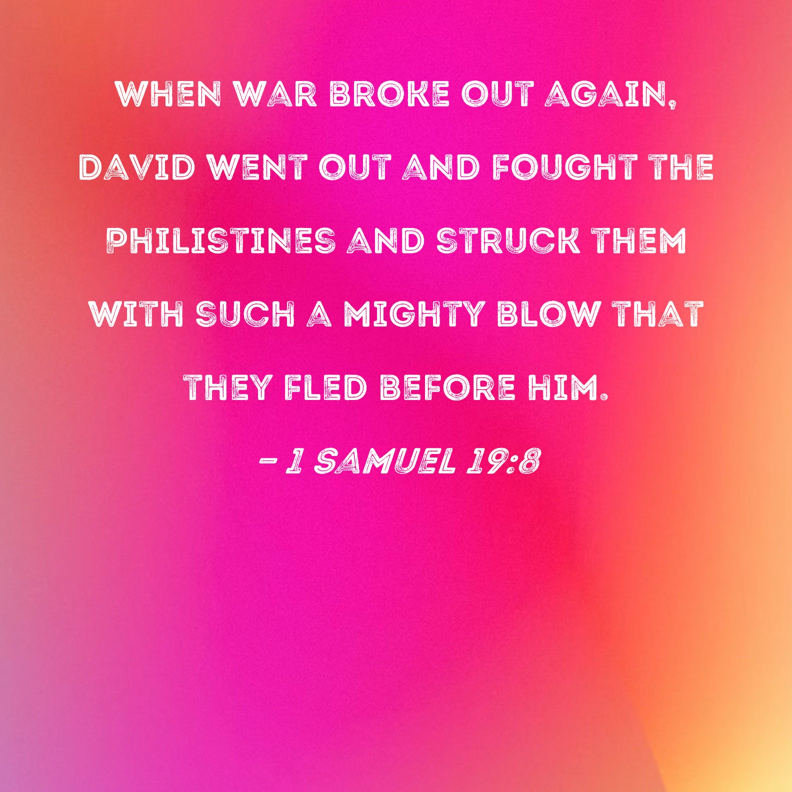 1 Samuel 19:8 When war broke out again, David went out and fought the Philistines and struck them with such a mighty blow that they fled before him.