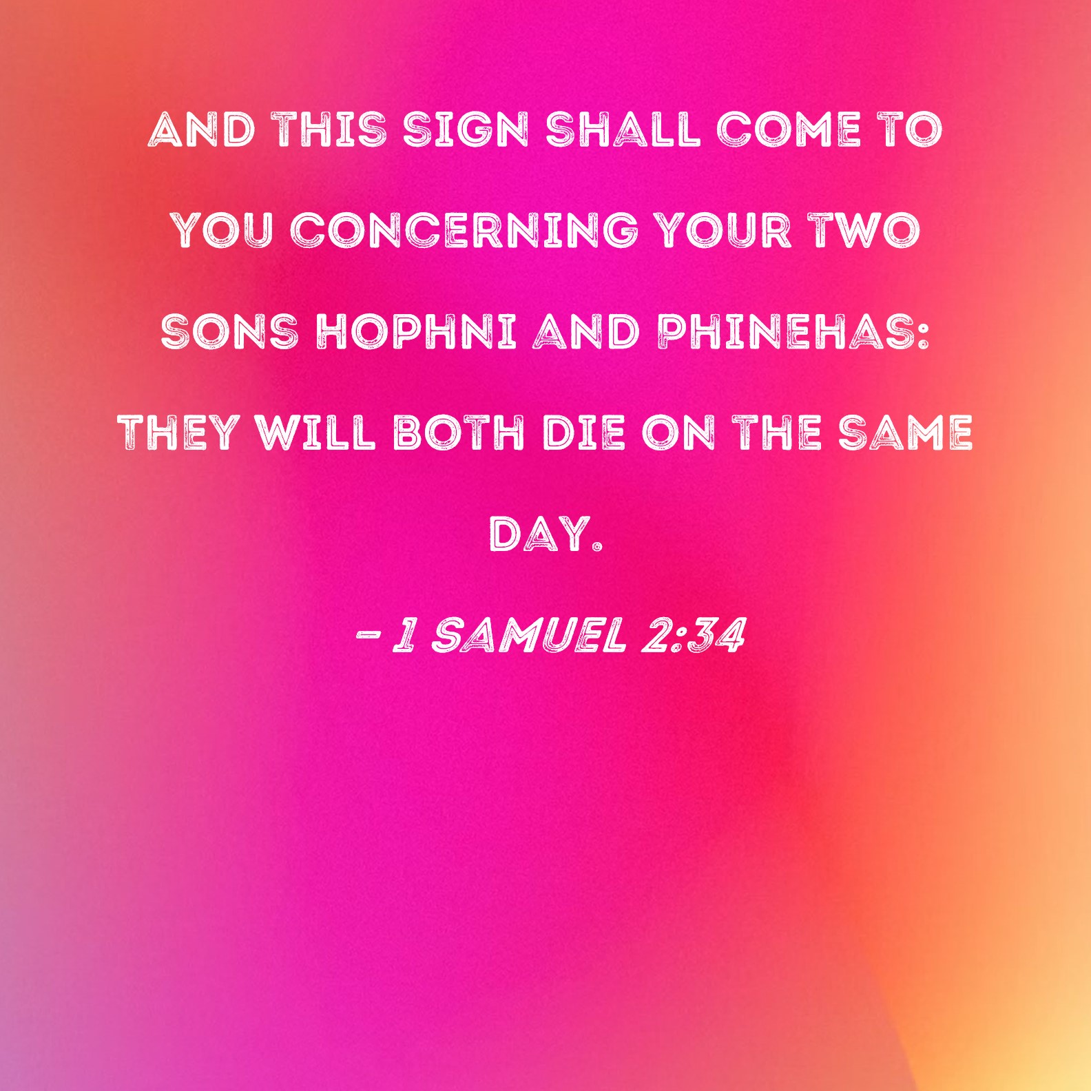 1 Samuel 2:34 And this sign shall come to you concerning your two sons Hophni and Phinehas: They will both die on the same day.