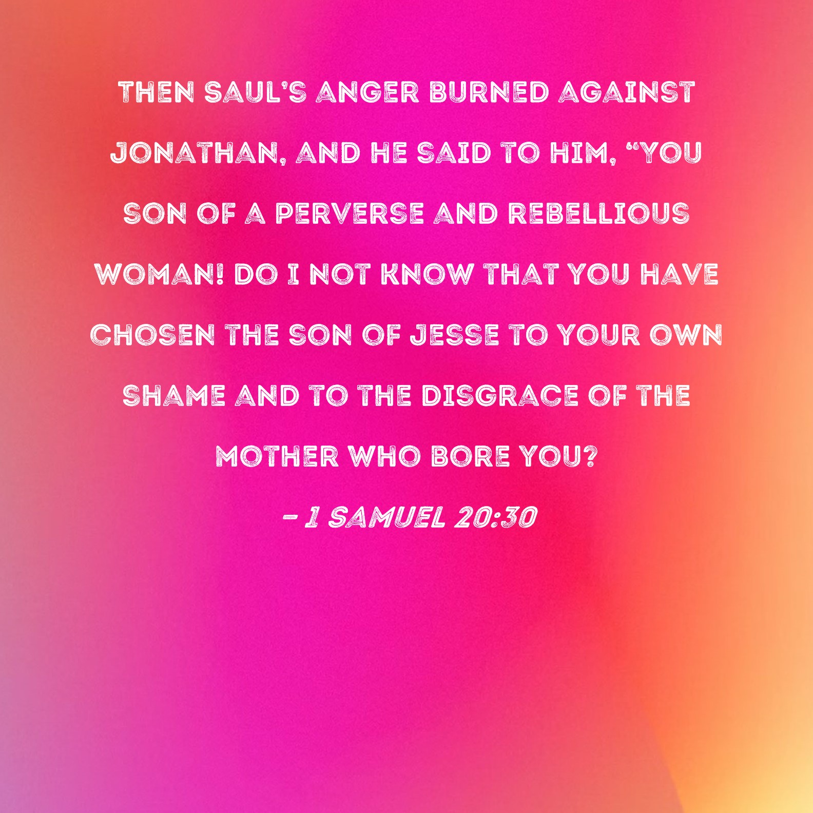 1 Samuel 20:30 Then Saul's anger burned against Jonathan, and he said to him, "You son of a perverse and rebellious woman! Do I not know that you have chosen the son of Jesse to your own shame and to the disgrace of the mother who bore you?