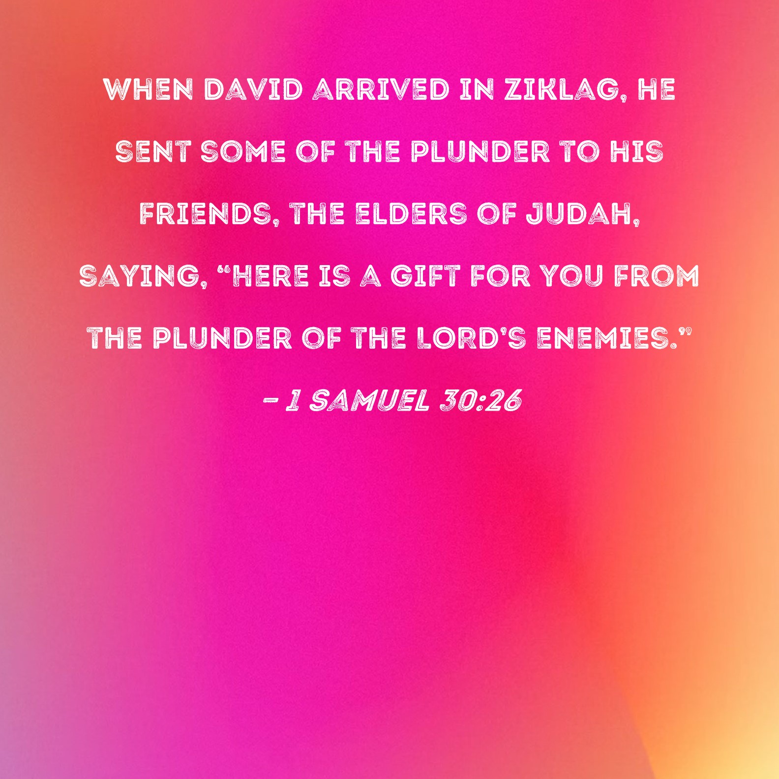 1 Samuel 30:26 When David arrived in Ziklag, he sent some of the plunder to his friends, the elders of Judah, saying, "Here is a gift for you from the plunder of the LORD's enemies."