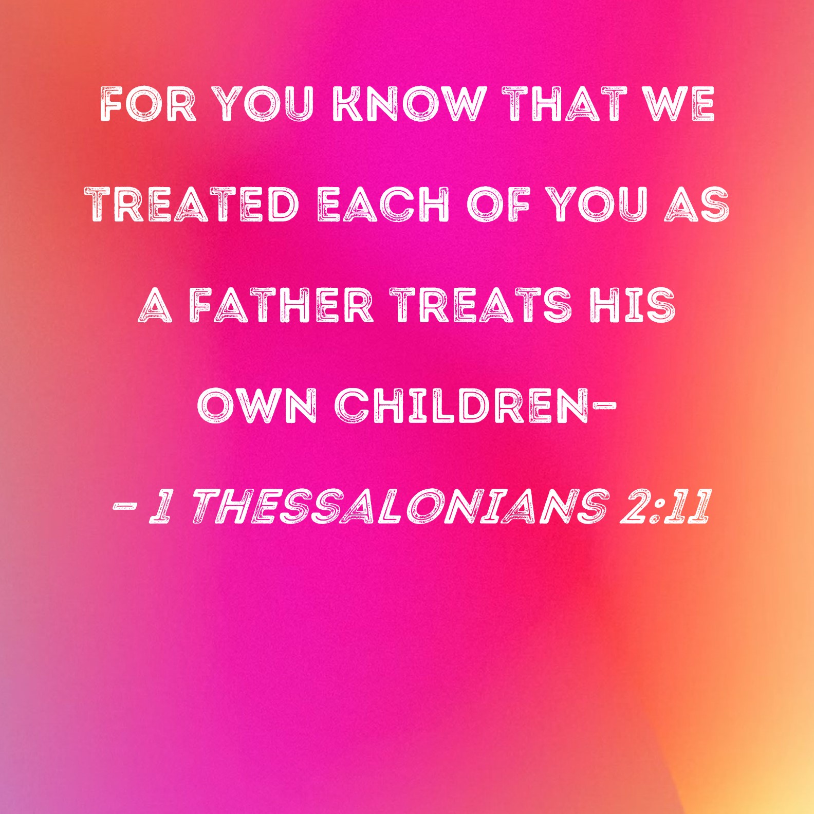 1 Thessalonians 2:11 For you know that we treated each of you as a father treats his own children--