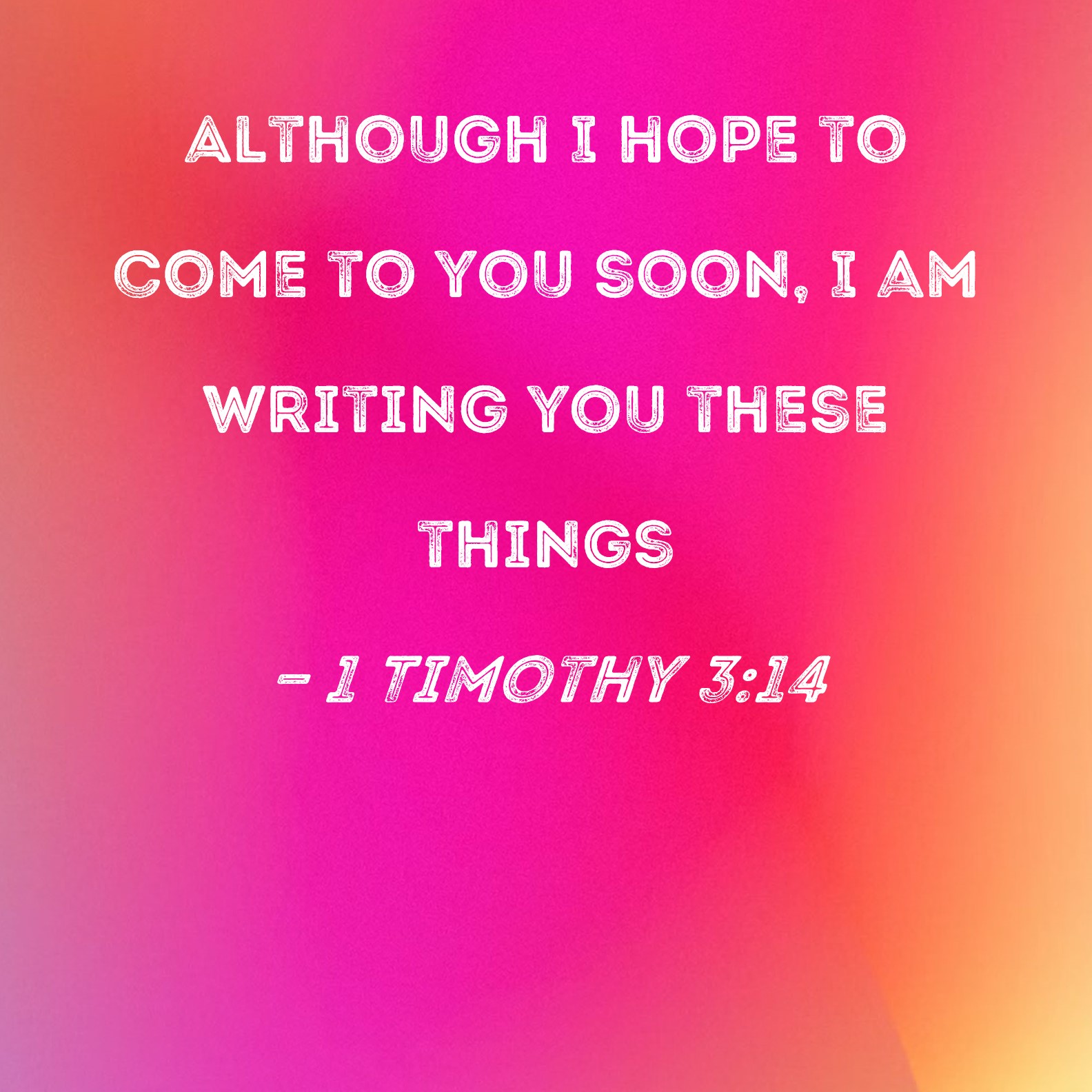 1 Timothy 3:14 Although I hope to come to you soon, I am writing you these things