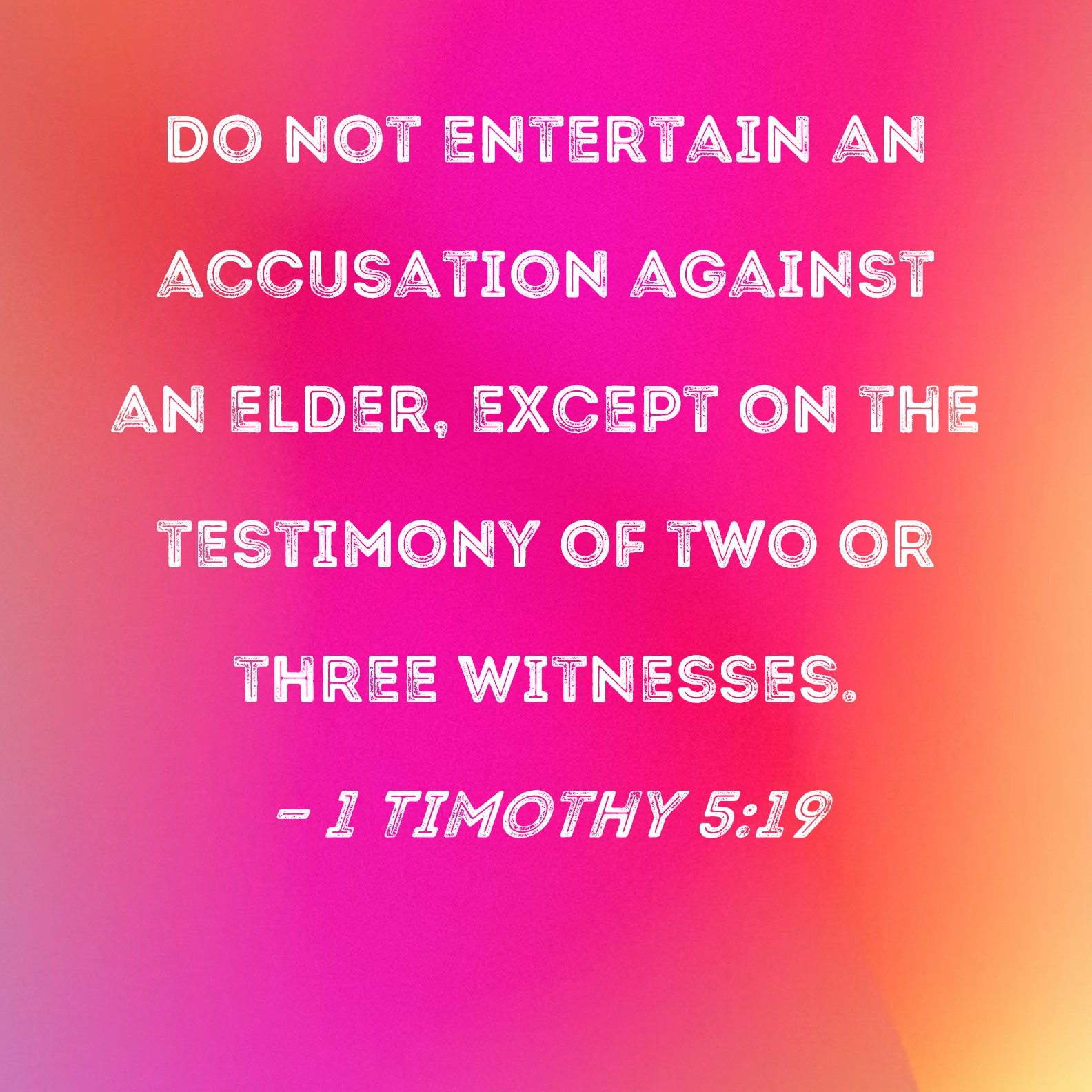 Do not entertain an accusation against an elder, except on the testimony of two or three witnesses.