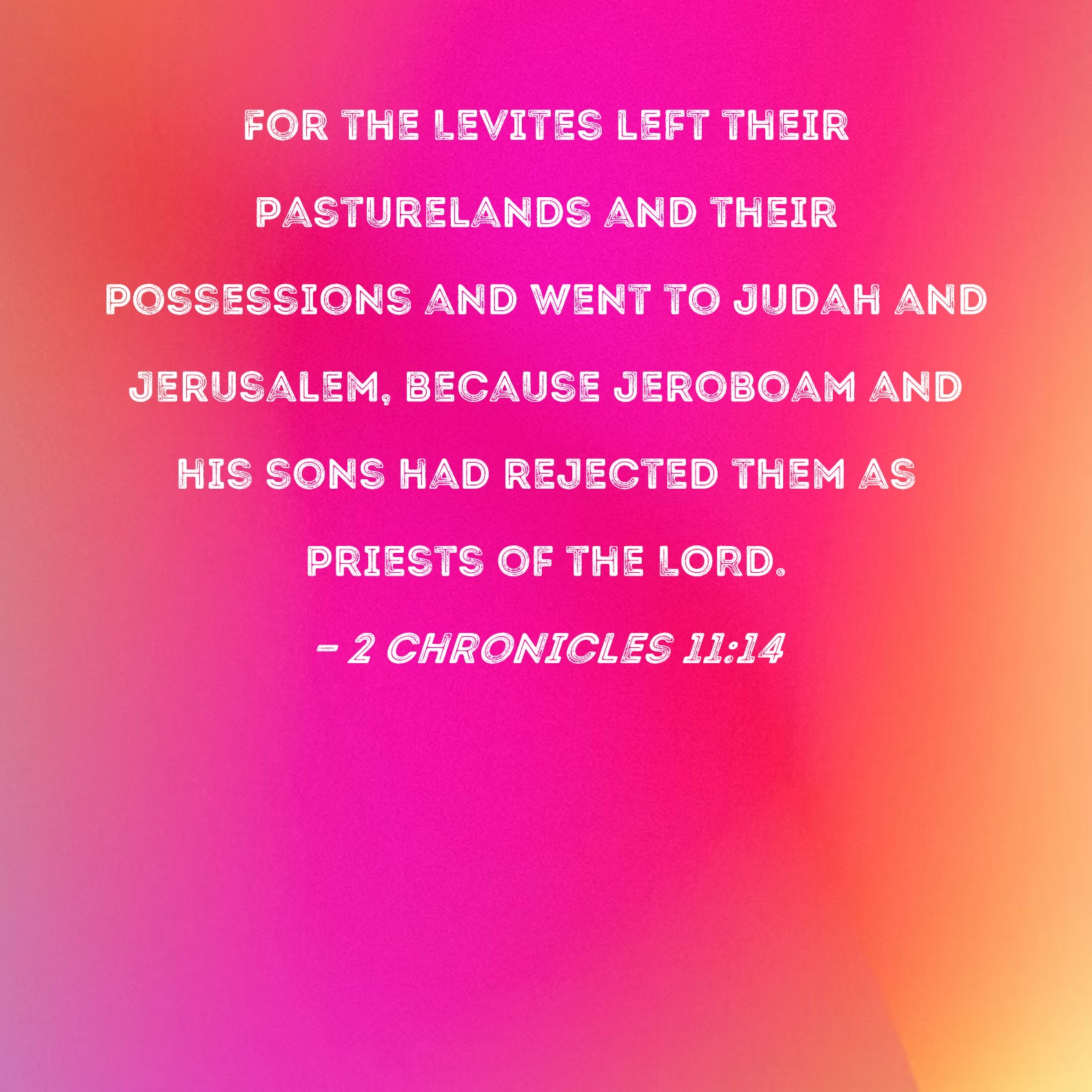 2 Chronicles 11:14 For the Levites left their pasturelands and their possessions and went to Judah and Jerusalem, because Jeroboam and his sons had rejected them as priests of the LORD.