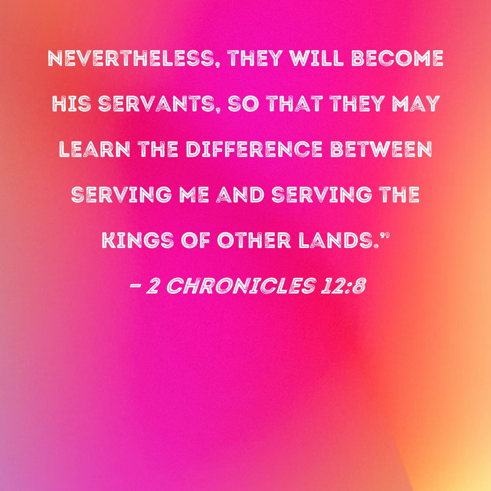 2 Chronicles 12:8 Nevertheless, they will become his servants, so that they may learn the difference between serving Me and serving the kings of other lands."