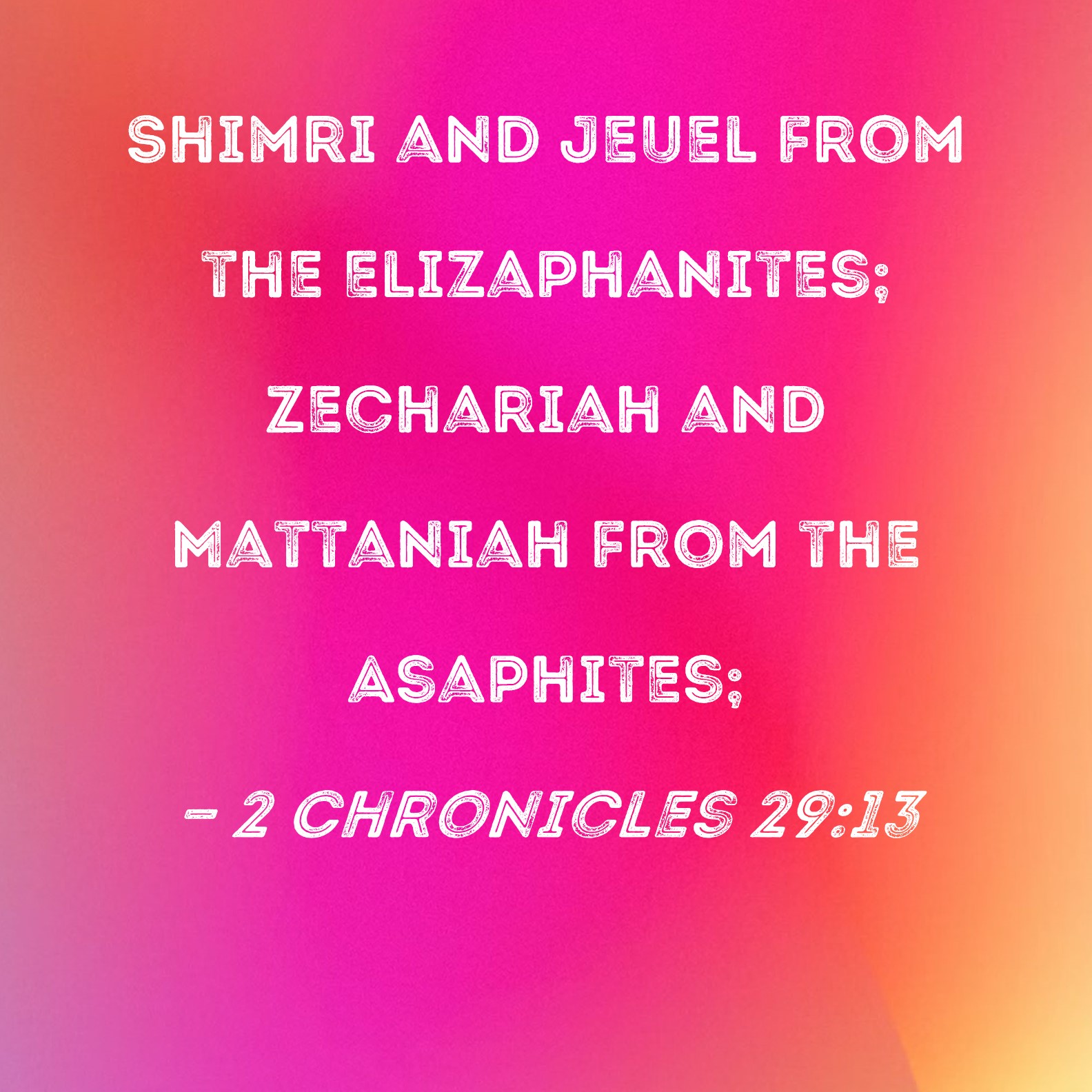 2 Chronicles 29:13 Shimri and Jeuel from the Elizaphanites; Zechariah and Mattaniah from the Asaphites;