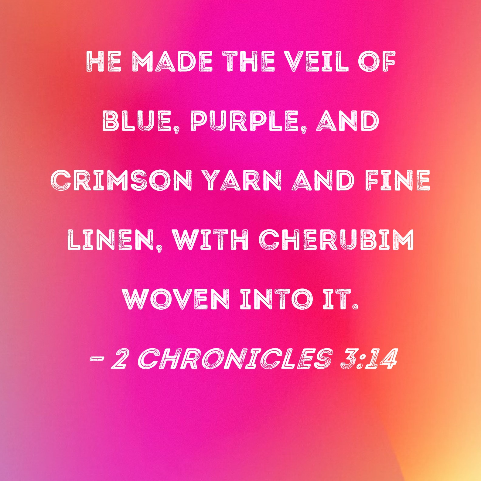 2 Chronicles 3:14 He made the veil of blue, purple, and crimson yarn and fine linen, with cherubim woven into it.