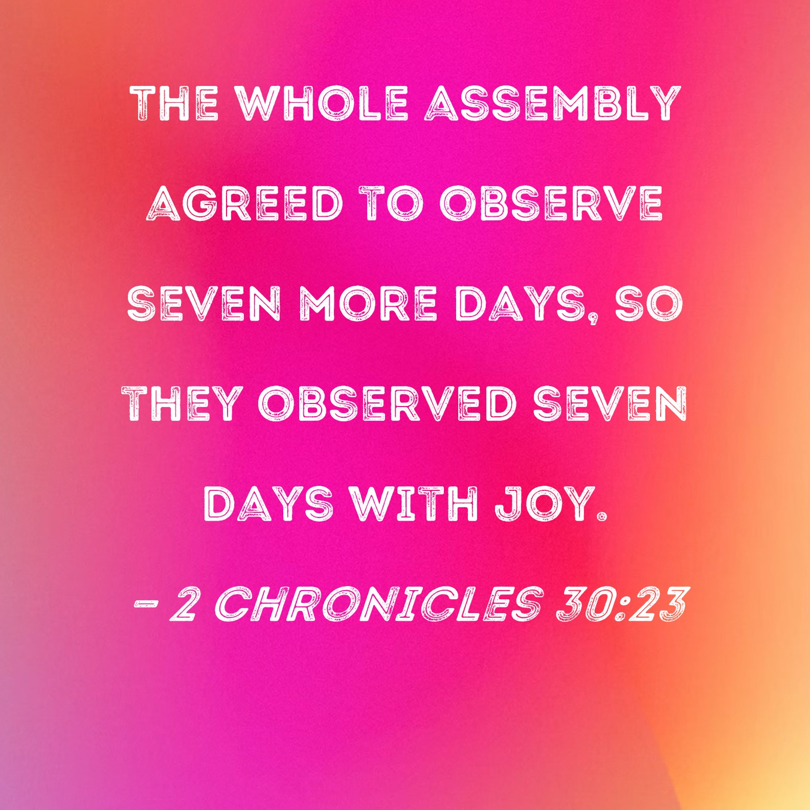 2 Chronicles 30:23 The whole assembly agreed to observe seven more days, so they observed seven days with joy.