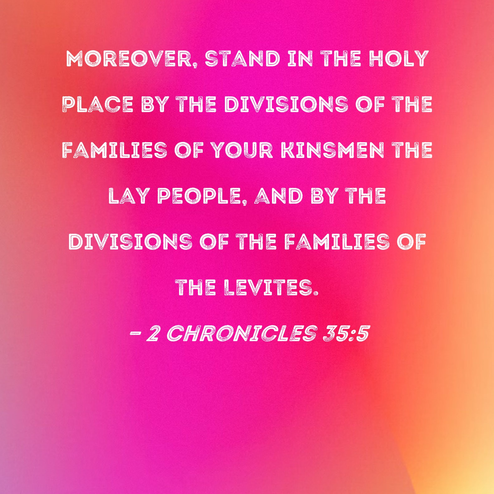 2 Chronicles 35:5 Moreover, stand in the Holy Place by the divisions of the families of your kinsmen the lay people, and by the divisions of the families of the Levites.
