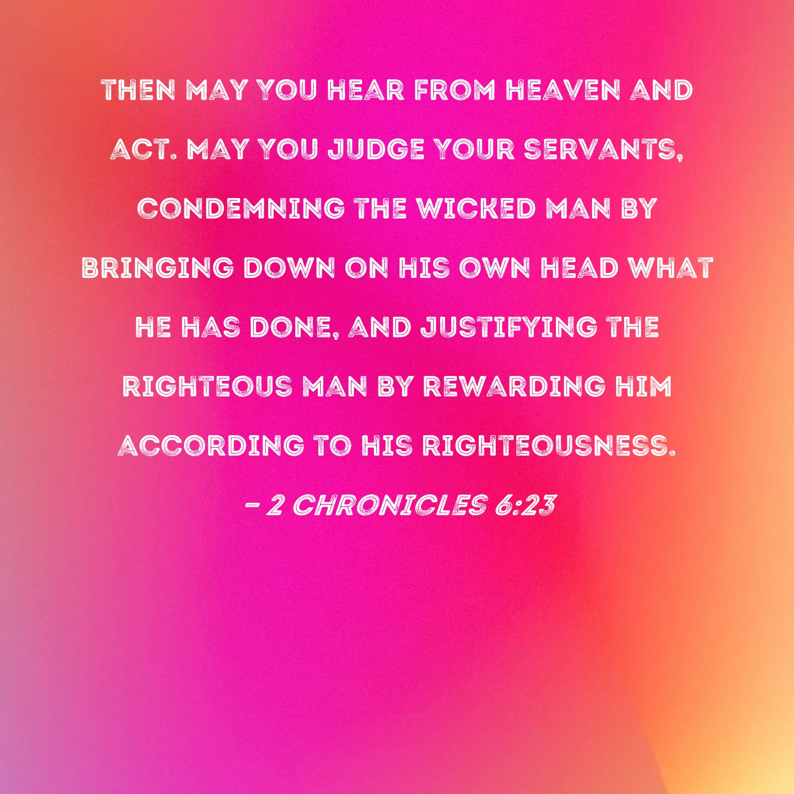 2 Chronicles 6:23 then may You hear from heaven and act. May You judge Your servants, condemning the wicked man by bringing down on his own head what he has done, and justifying the righteous man by rewarding him according to his righteousness.