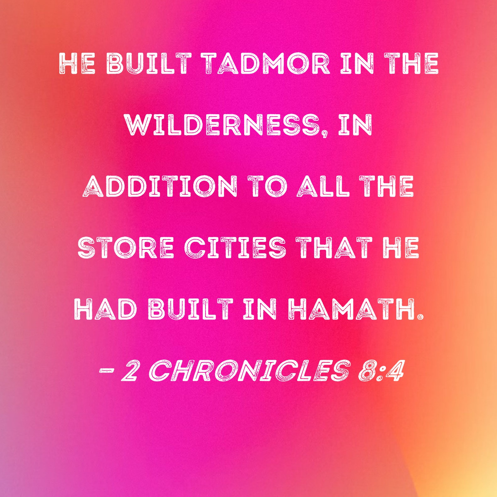 2 Chronicles 8:4 He built Tadmor in the wilderness, in addition to all the store cities that he had built in Hamath.