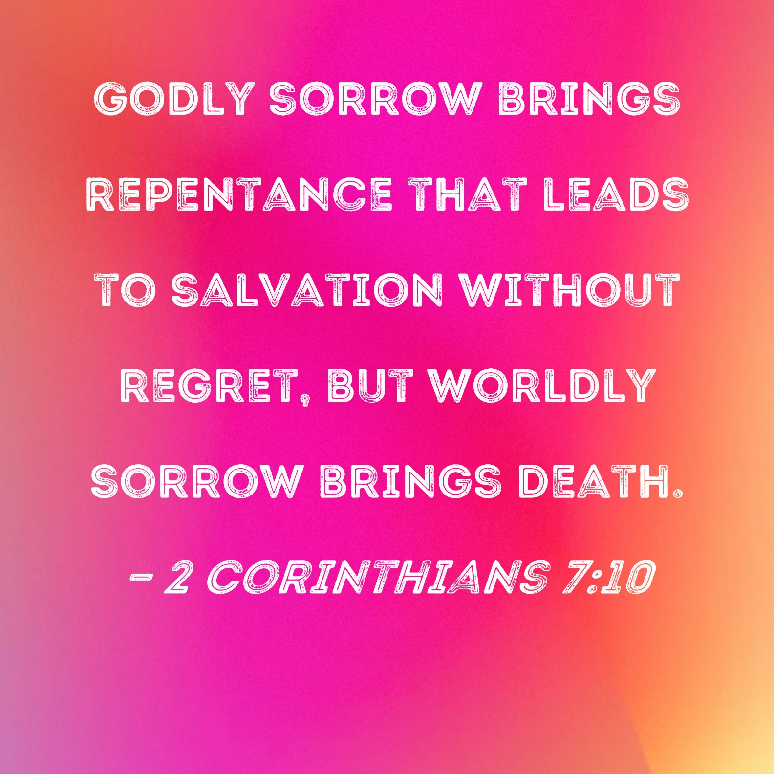 2 Corinthians 7:10 Godly sorrow brings repentance that leads to salvation without regret, but worldly sorrow brings death.