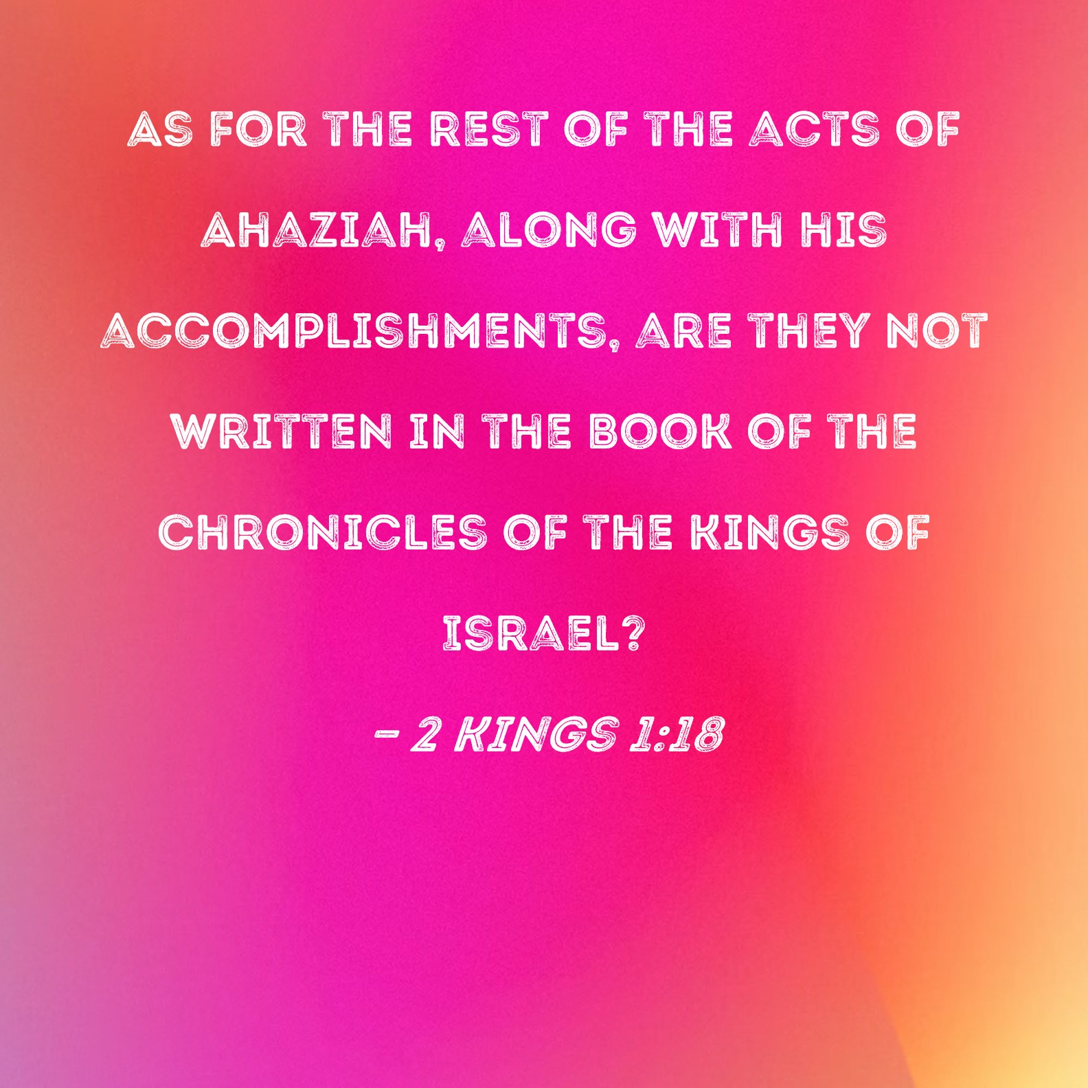 2 Kings 1:18 As for the rest of the acts of Ahaziah, along with his accomplishments, are they not written in the Book of the Chronicles of the Kings of Israel?