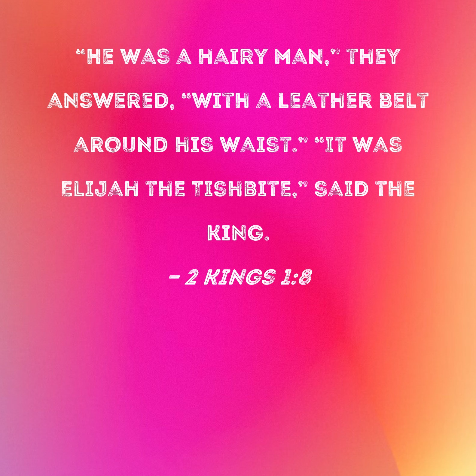 2 Kings 1:8 "He was a hairy man," they answered, "with a leather belt around his waist." "It was Elijah the Tishbite," said the king.
