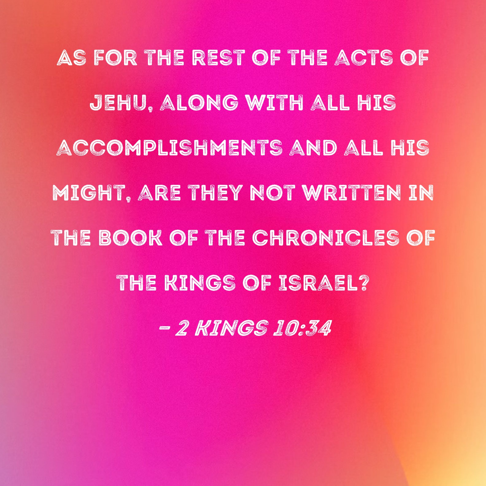 2 Kings 10:34 As for the rest of the acts of Jehu, along with all his accomplishments and all his might, are they not written in the Book of the Chronicles of the Kings of Israel?
