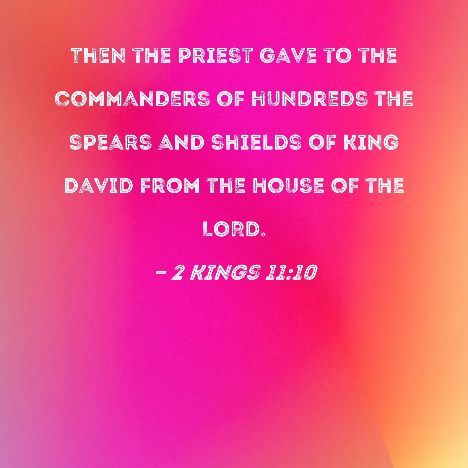 2 Kings 11:10 Then the priest gave to the commanders of hundreds the spears and shields of King David from the house of the LORD.