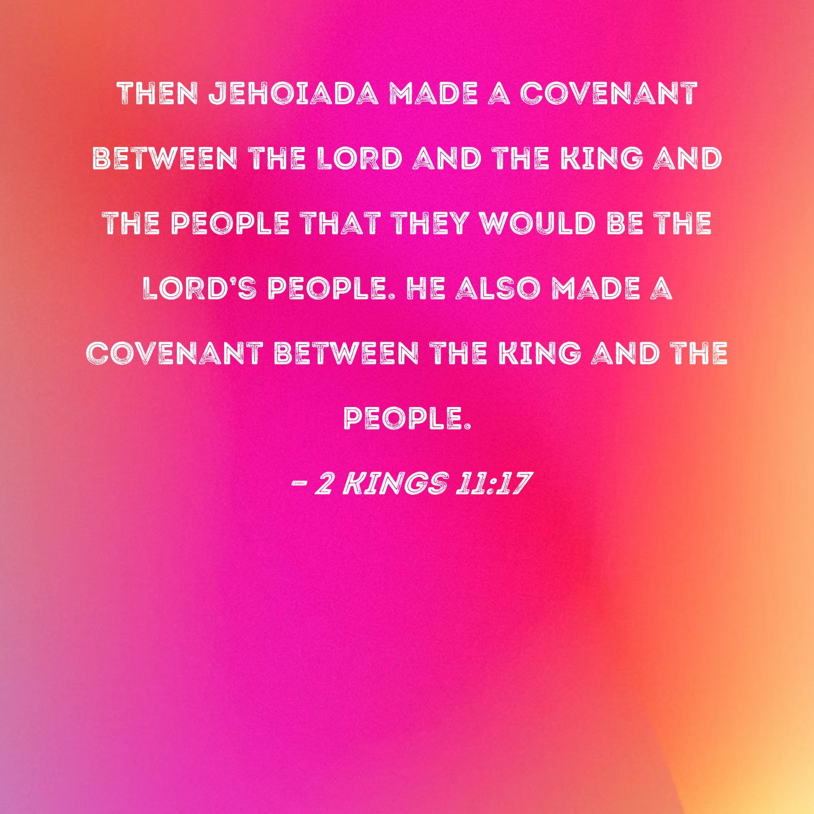 2 Kings 11:17 Then Jehoiada made a covenant between the LORD and the king and the people that they would be the LORD's people. He also made a covenant between the king and the people.