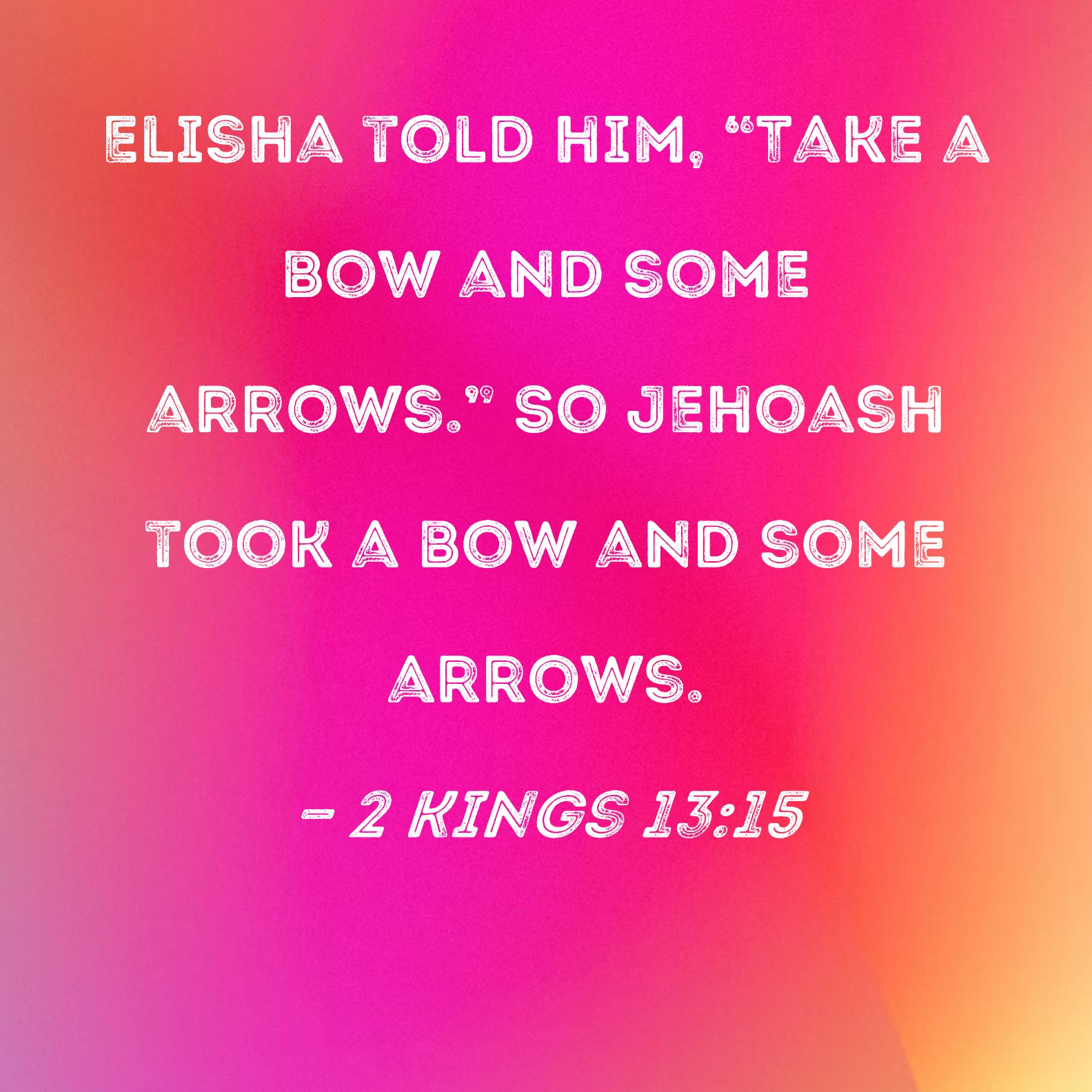 2 Kings 13:15 Elisha told him, "Take a bow and some arrows." So Jehoash took a bow and some arrows.