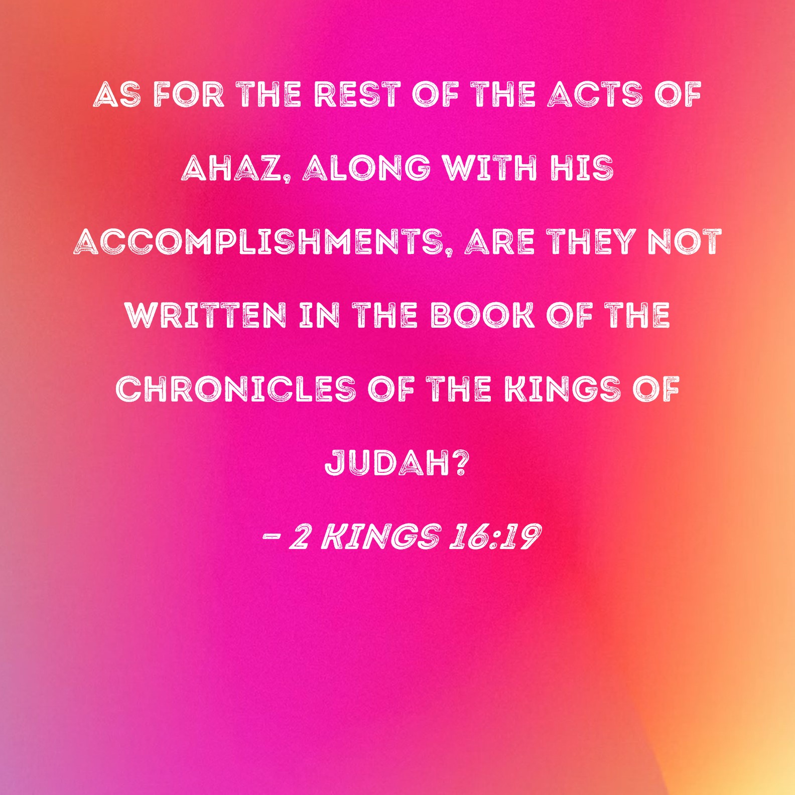 2 Kings 16:19 As for the rest of the acts of Ahaz, along with his accomplishments, are they not written in the Book of the Chronicles of the Kings of Judah?