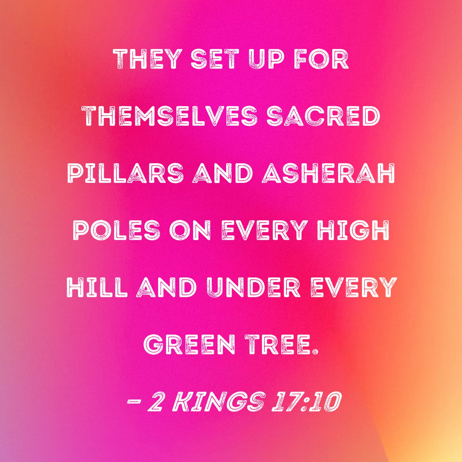 2 Kings 17:10 They set up for themselves sacred pillars and Asherah poles on every high hill and under every green tree.