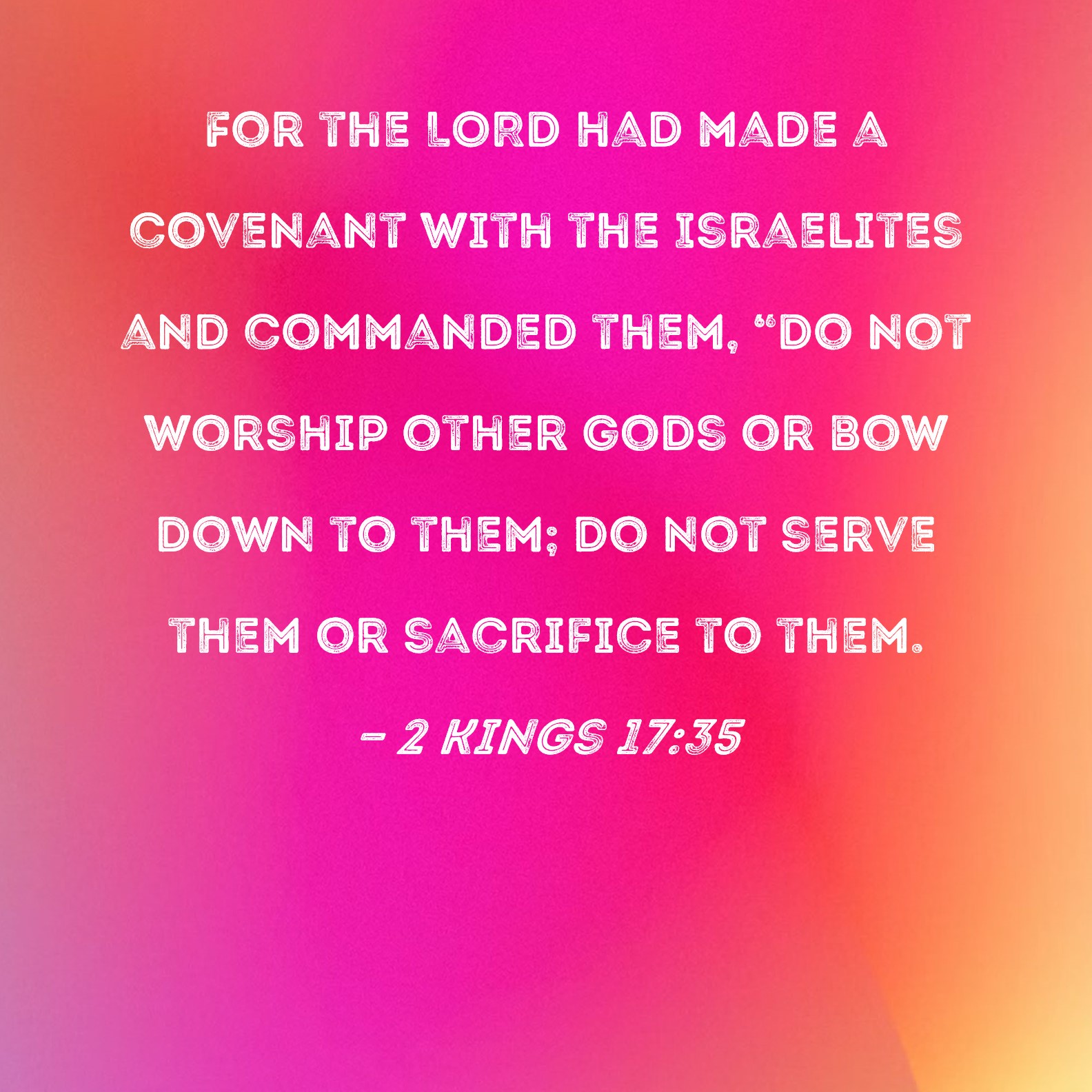 2 Kings 17:35 For the LORD had made a covenant with the Israelites and commanded them, "Do not worship other gods or bow down to them; do not serve them or sacrifice to them.