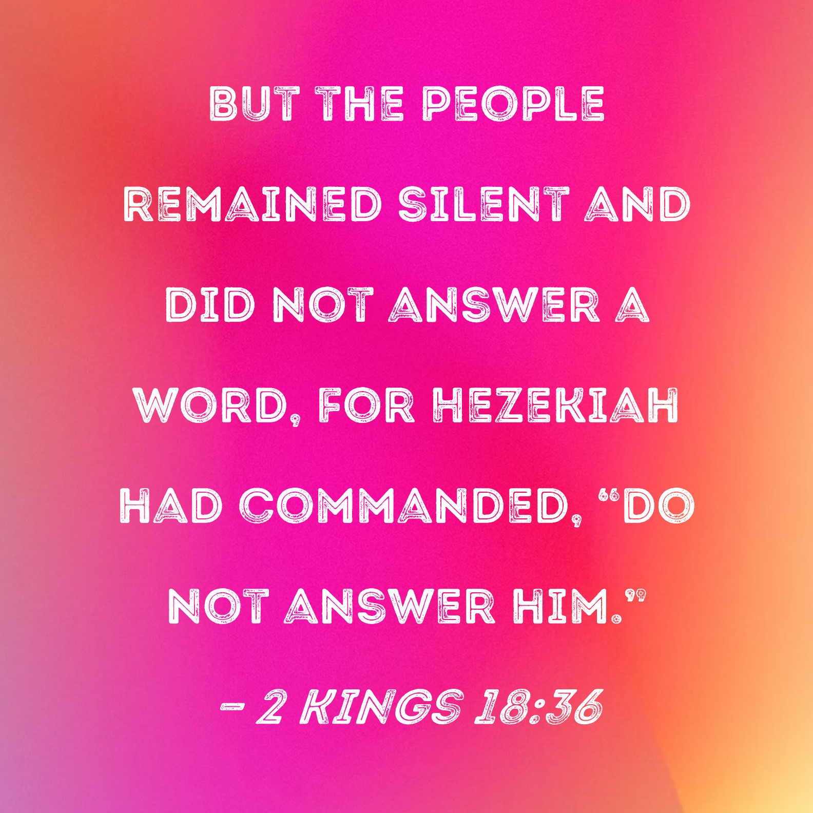 2 Kings 18:36 But the people remained silent and did not answer a word, for Hezekiah had commanded, "Do not answer him."