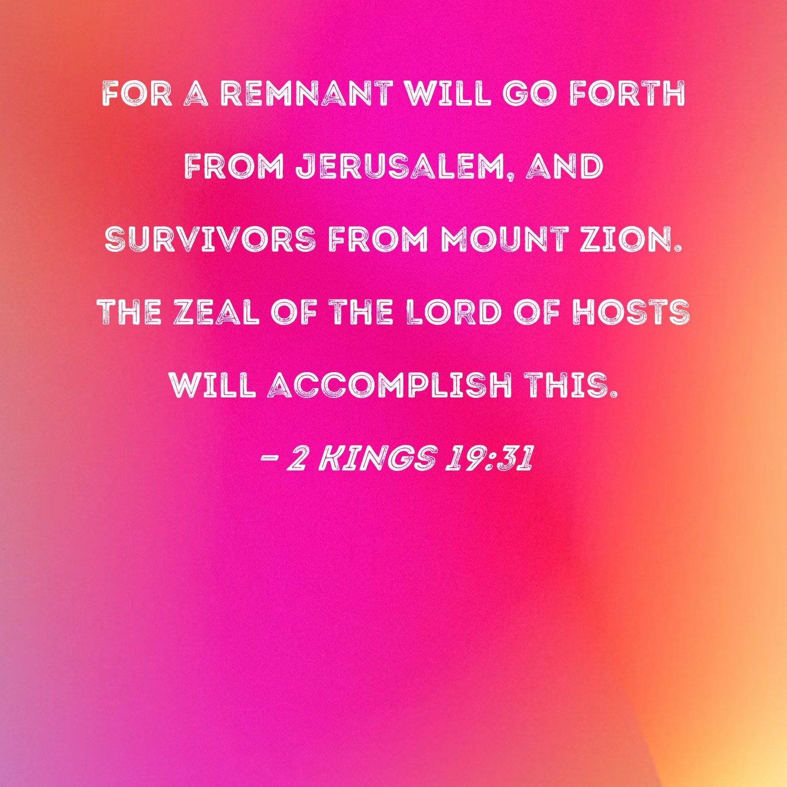 2 Kings 19:31 For a remnant will go forth from Jerusalem, and survivors from Mount Zion. The zeal of the LORD of Hosts will accomplish this.