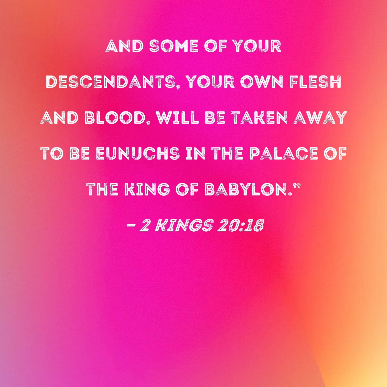 2 Kings 20:18 And some of your descendants, your own flesh and blood, will be taken away to be eunuchs in the palace of the king of Babylon."