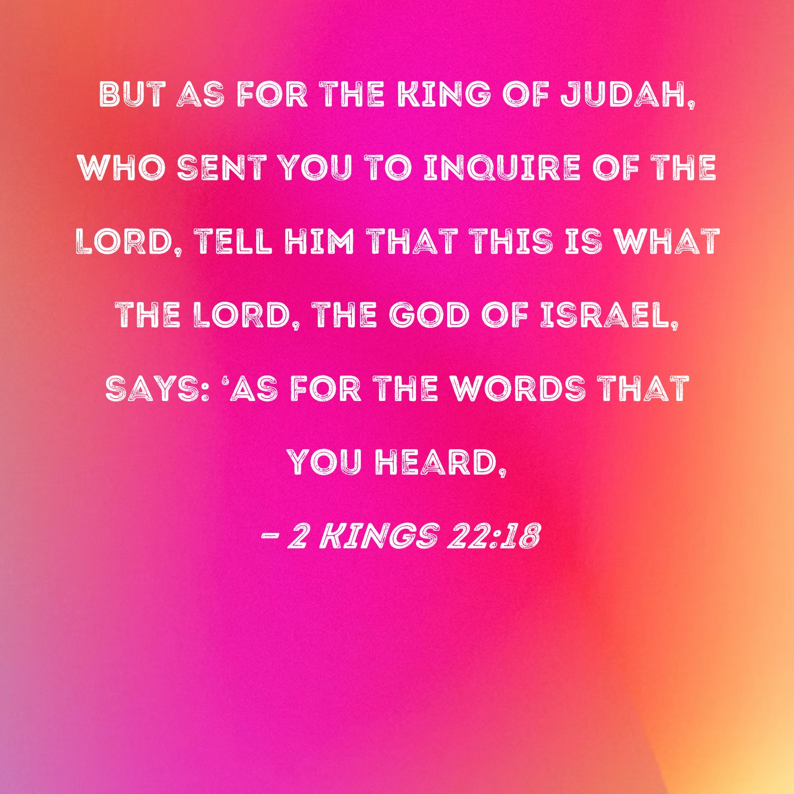 2 Kings 22:18 But as for the king of Judah, who sent you to inquire of the LORD, tell him that this is what the LORD, the God of Israel, says: 'As for the words that you heard,