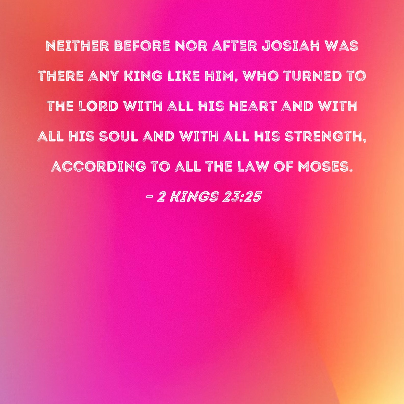 2 Kings 23:25 Neither before nor after Josiah was there any king like him, who turned to the LORD with all his heart and with all his soul and with all his strength, according to all the Law of Moses.