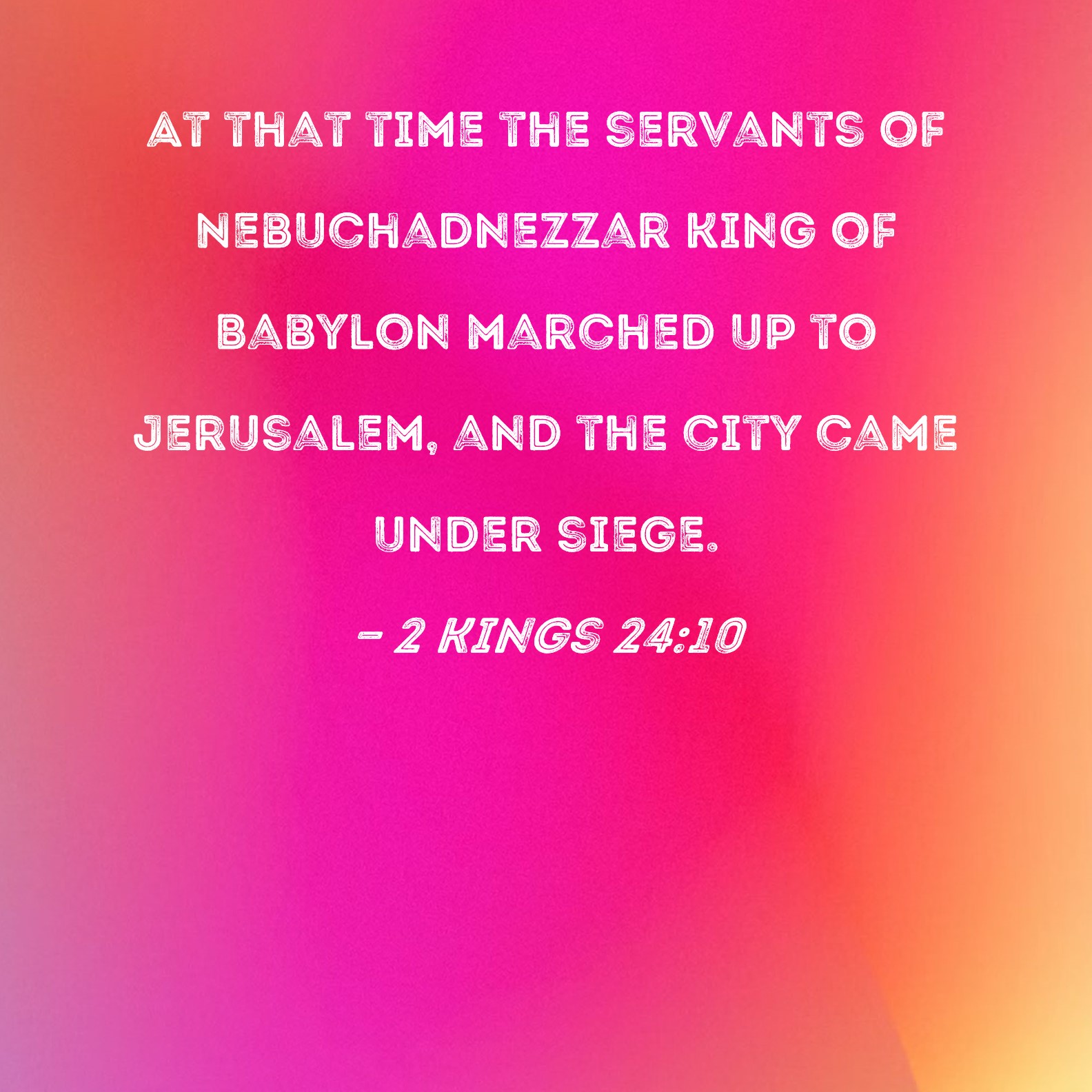 2 Kings 24:10 At that time the servants of Nebuchadnezzar king of Babylon marched up to Jerusalem, and the city came under siege.