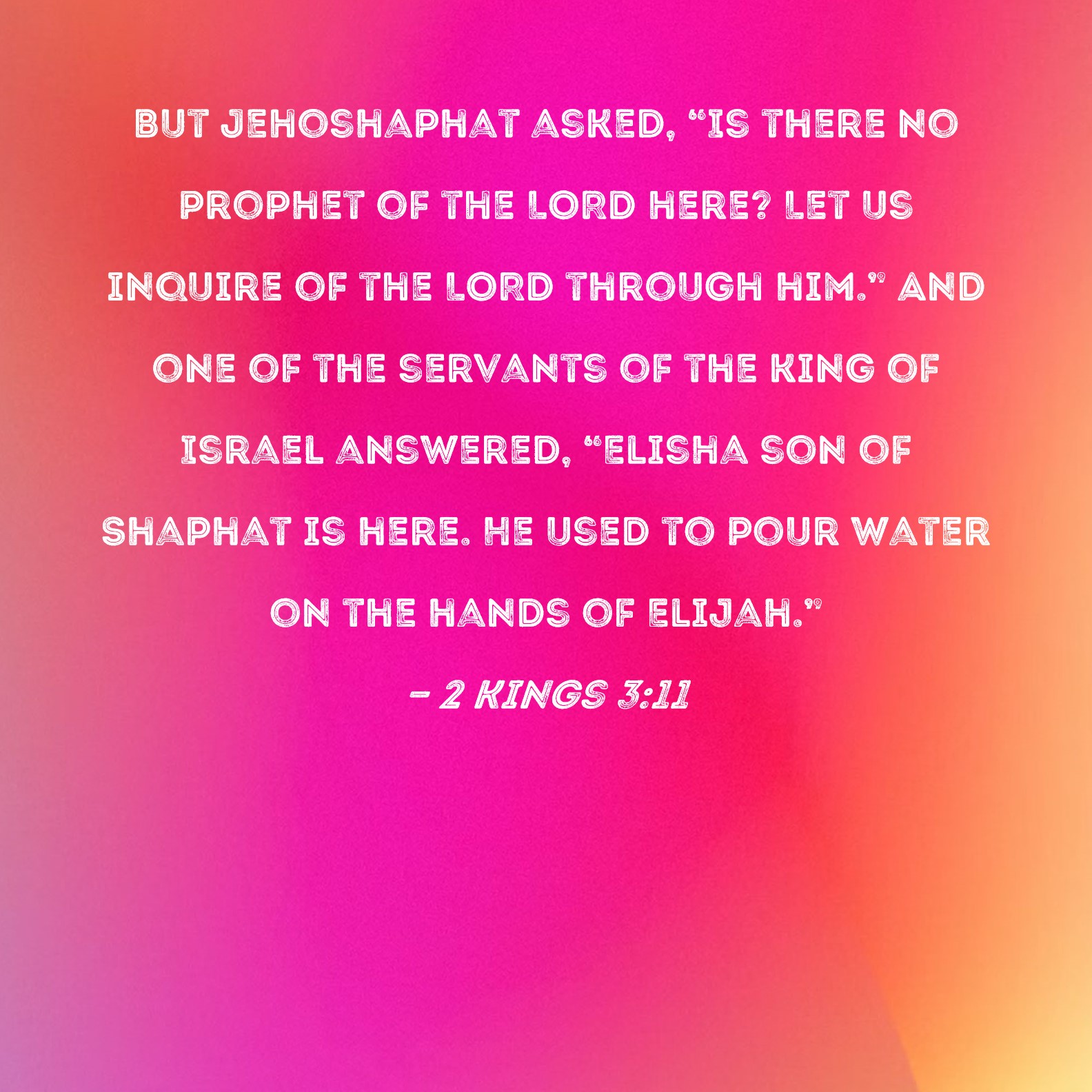 2 Kings 3:11 But Jehoshaphat asked, "Is there no prophet of the LORD here? Let us inquire of the LORD through him." And one of the servants of the king of Israel answered, "Elisha son of Shaphat is here. He used to pour water on the hands of Elijah."