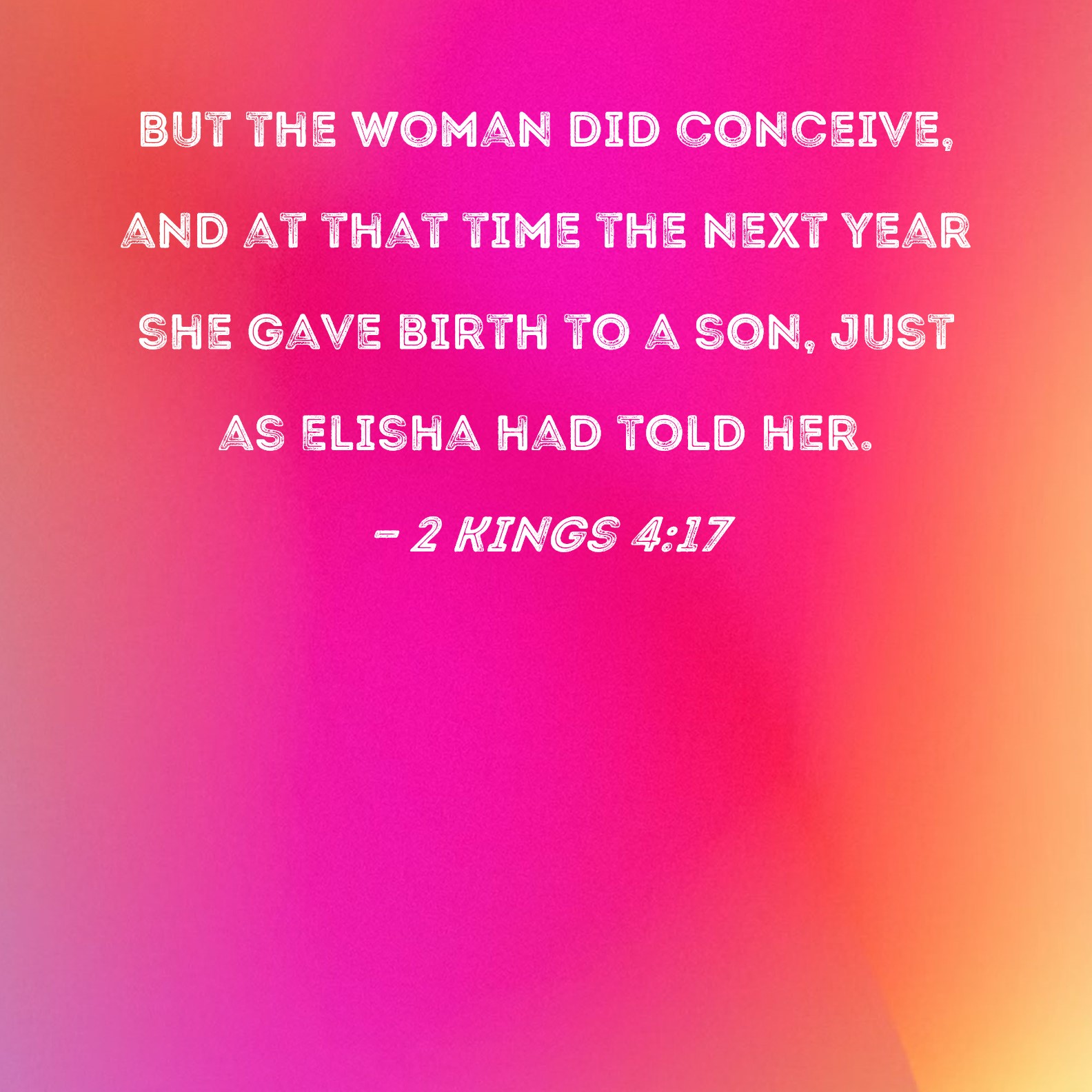 2 Kings 4:17 But the woman did conceive, and at that time the next year she gave birth to a son, just as Elisha had told her.