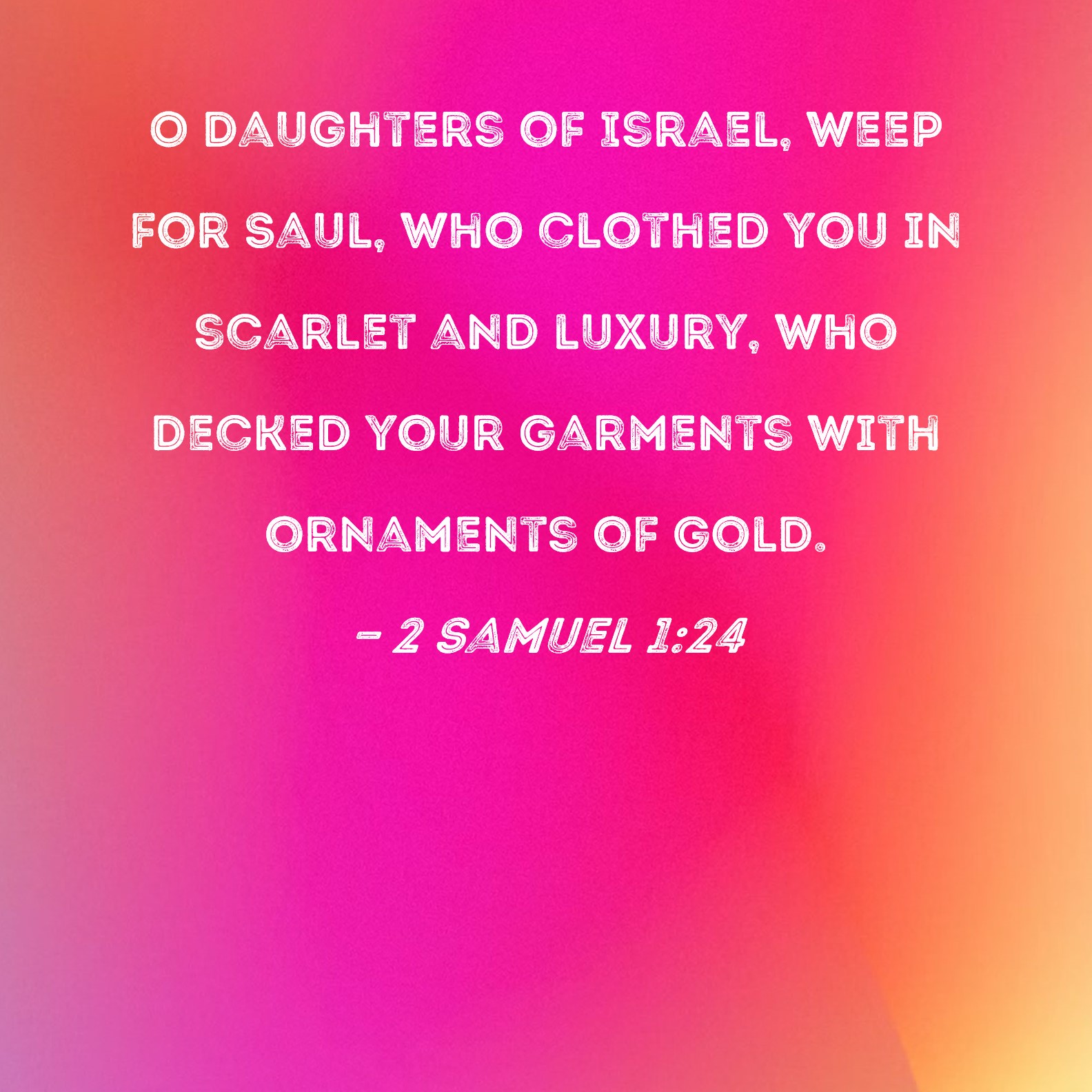 2 Samuel 1:24 NIV2 Samuel 1:24 NLT2 Samuel 1:24 ESV2 Samuel 1:24 NASB2 Samuel 1:24 KJV2 Samuel 1:24 Interlinear2 Samuel 1:24 Commentaries2 Samuel 1:24 Parallel Texts2 Samuel 1:24 Bible Apps2 Samuel 1:24 ParallelBible Hub