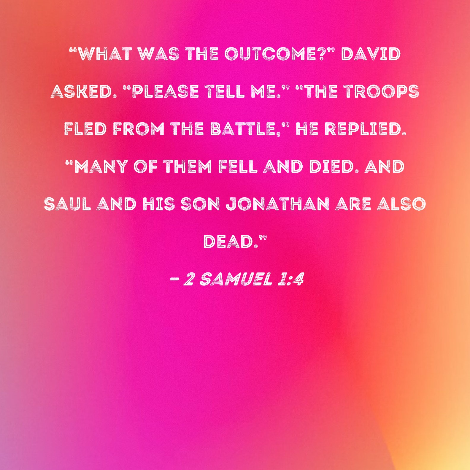 2 Samuel 1:4 "What was the outcome?" David asked. "Please tell me." "The troops fled from the battle," he replied. "Many of them fell and died. And Saul and his son Jonathan are also dead."