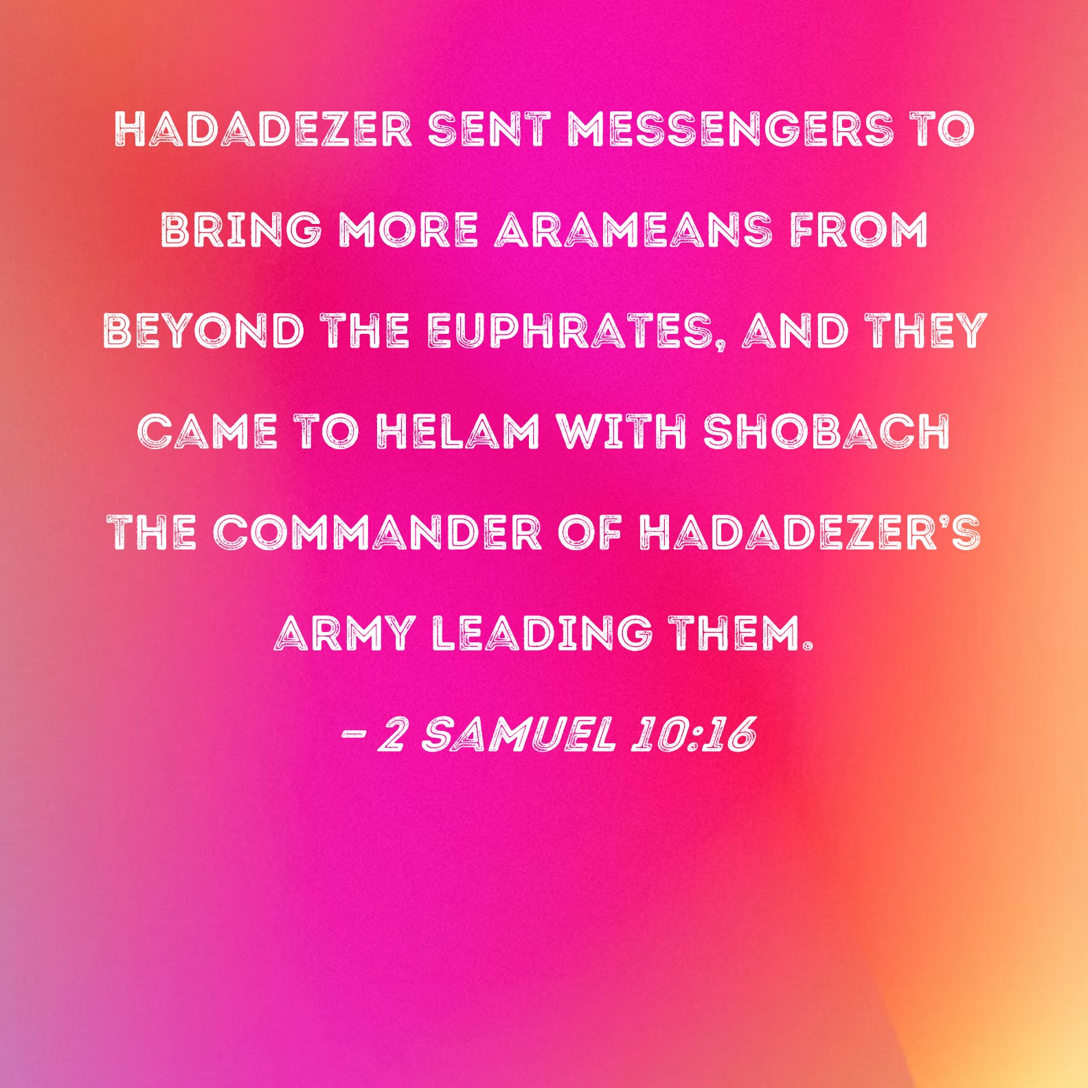 2 Samuel 10:16 Hadadezer sent messengers to bring more Arameans from beyond the Euphrates, and they came to Helam with Shobach the commander of Hadadezer's army leading them.