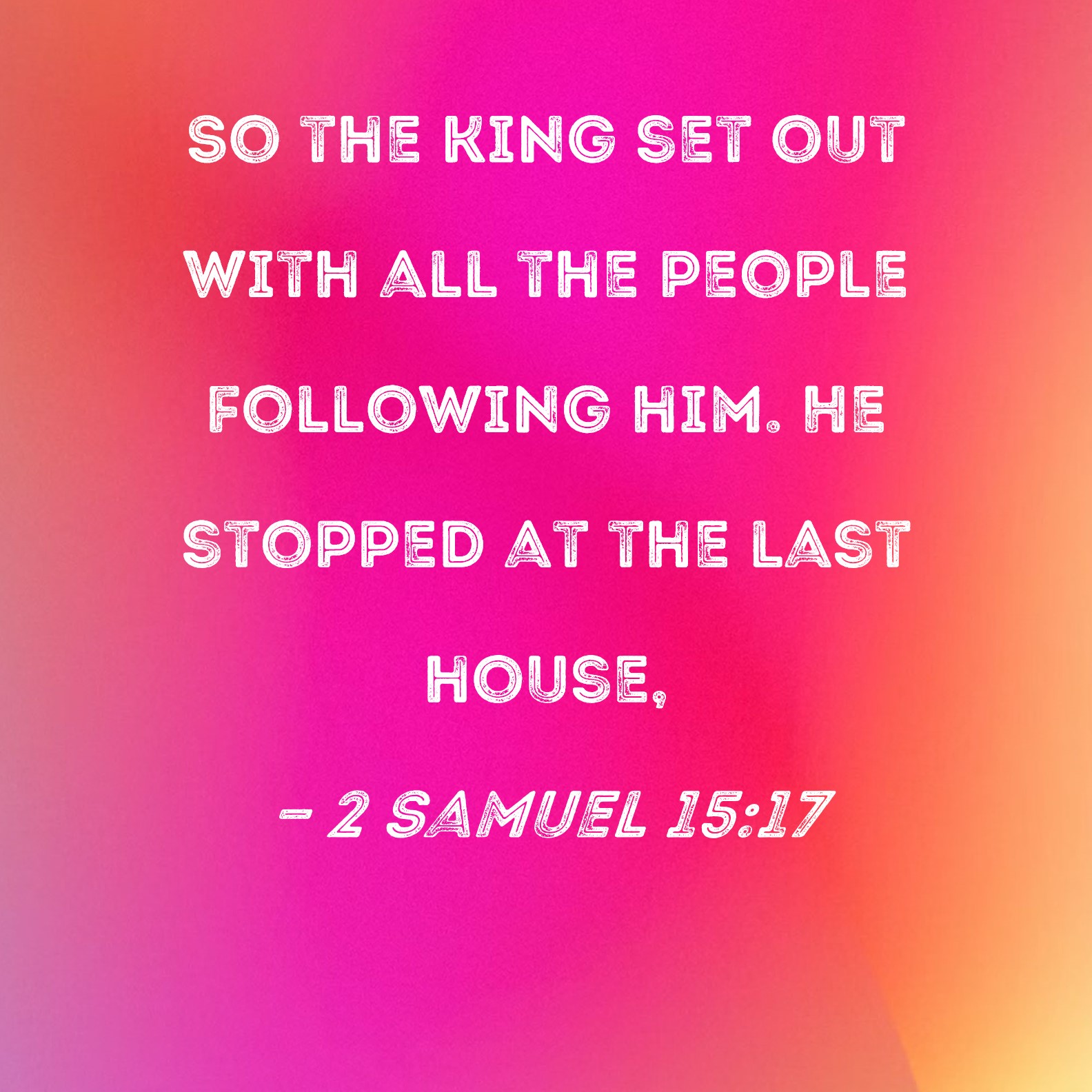 2 Samuel 15:17 So the king set out with all the people following him. He stopped at the last house,