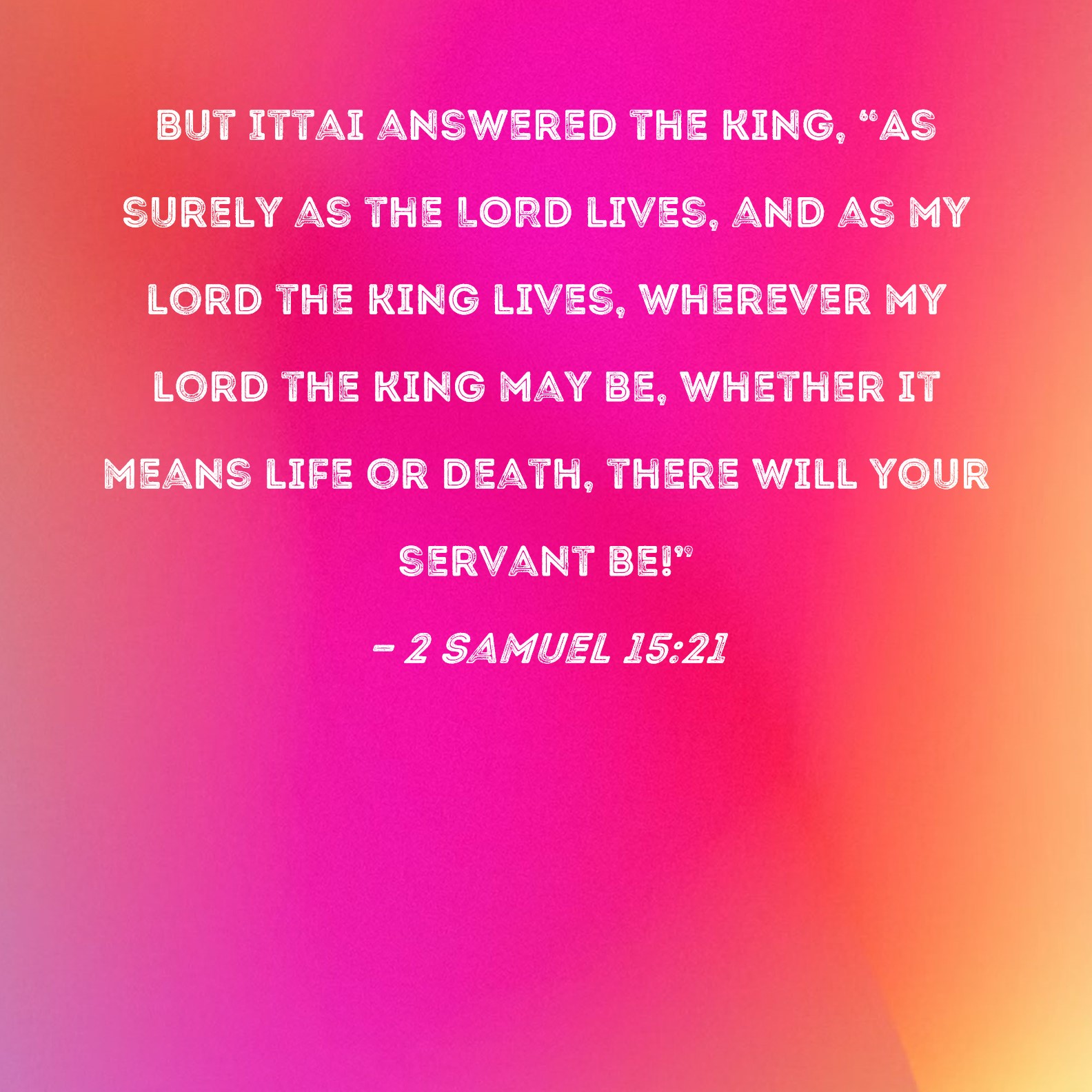 2 Samuel 15:21 But Ittai answered the king, "As surely as the LORD lives, and as my lord the king lives, wherever my lord the king may be, whether it means life or death, there will your servant be!"