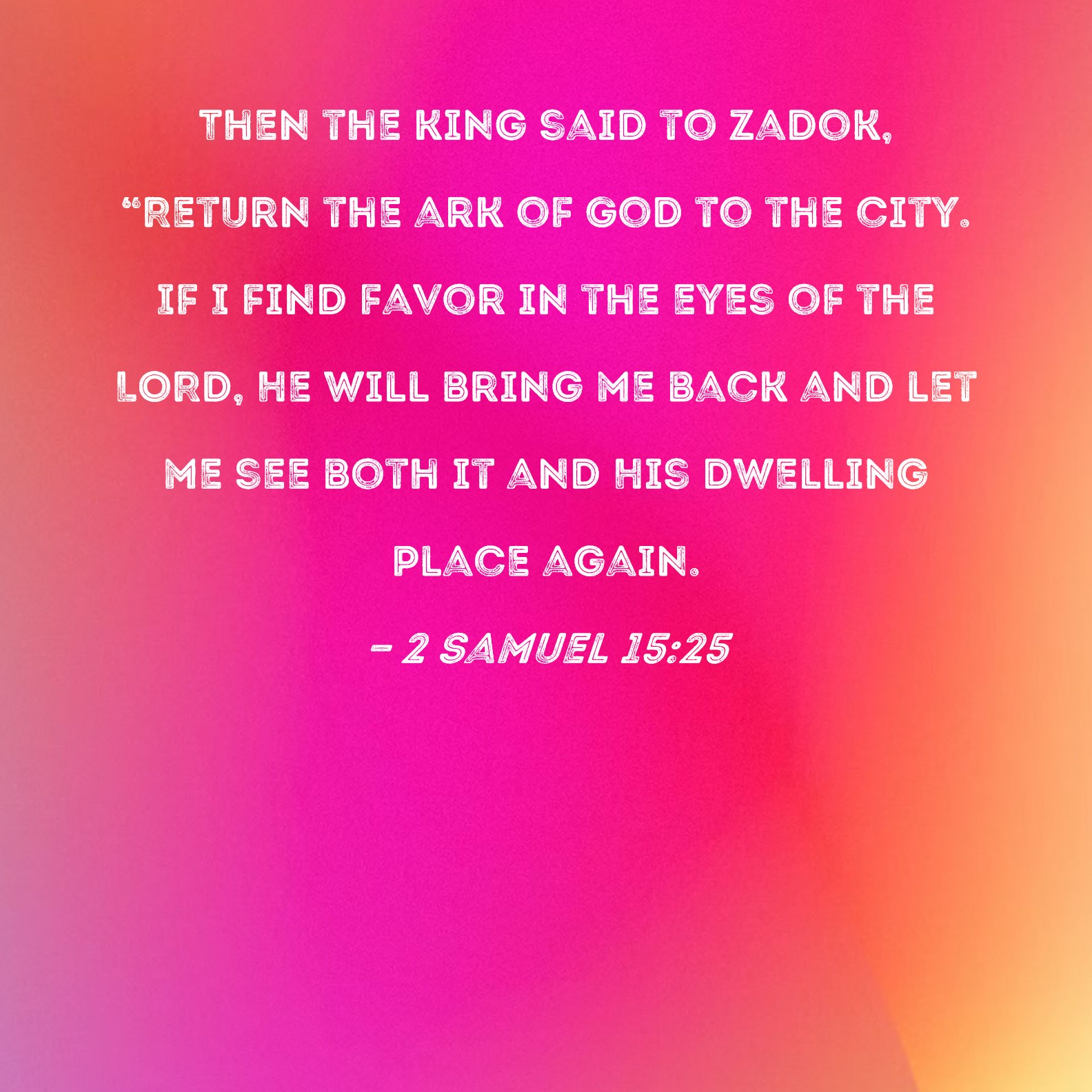 2 Samuel 15:25 Then the king said to Zadok, "Return the ark of God to the city. If I find favor in the eyes of the LORD, He will bring me back and let me see both it and His dwelling place again.