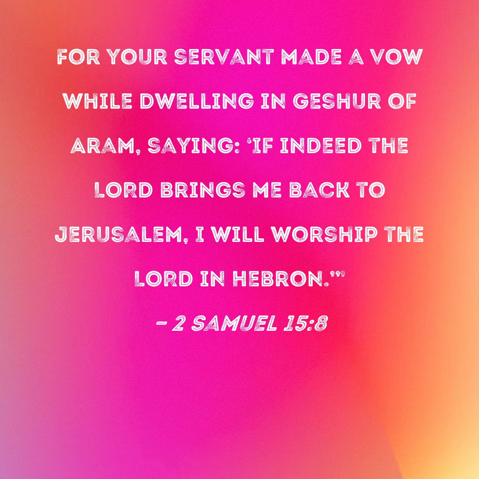 2 Samuel 15:8 For your servant made a vow while dwelling in Geshur of Aram, saying: 'If indeed the LORD brings me back to Jerusalem, I will worship the LORD in Hebron.'"