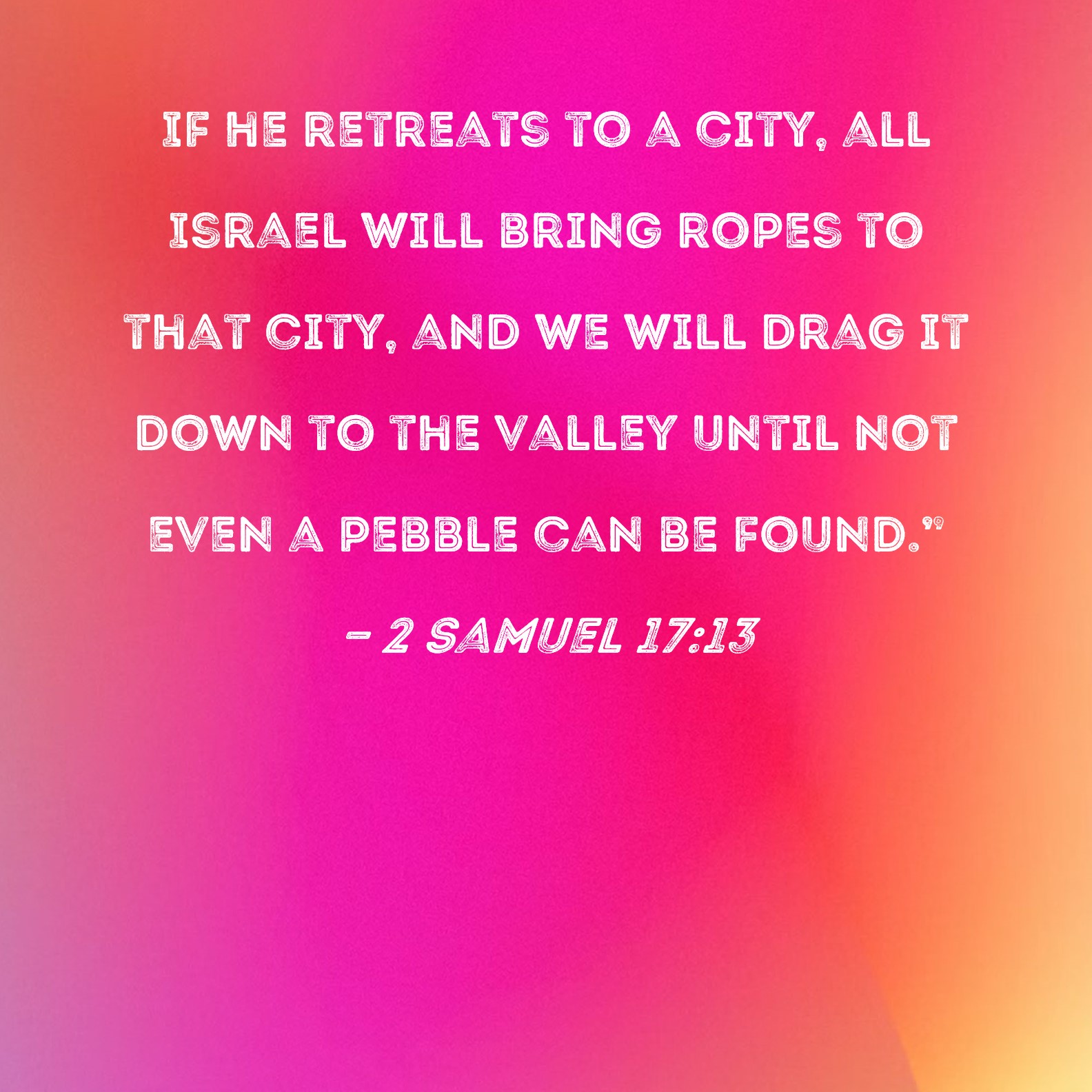 2 Samuel 17:13 If he retreats to a city, all Israel will bring ropes to that city, and we will drag it down to the valley until not even a pebble can be found."
